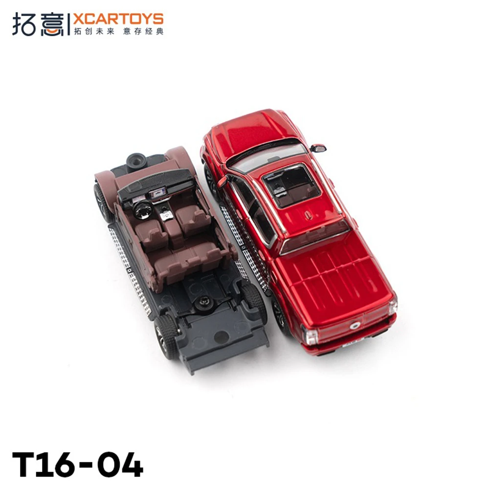 Imagine adding this eye-catching diecast model to your collection—its vibrant, glossy POER Danxia Red finish immediately draws attention. The modern SUV-inspired design features a bold, boxy shape with sleek, sharp lines that perfectly capture contemporary automotive aesthetics. The detailed front grille with horizontal chrome slats and a prominent central emblem, coupled with realistic headlights, provides an authentic look. Chrome accents around the windows and along the side steps add an elegant touch. The transparent windows reveal a meticulously crafted interior, while the textured sunroof enhances the upscale appearance. Black rubber wheels with silver accents and textured tires complete the overall realism. This miniature is not only a collectible but a statement piece for any enthusiast seeking style and precision.