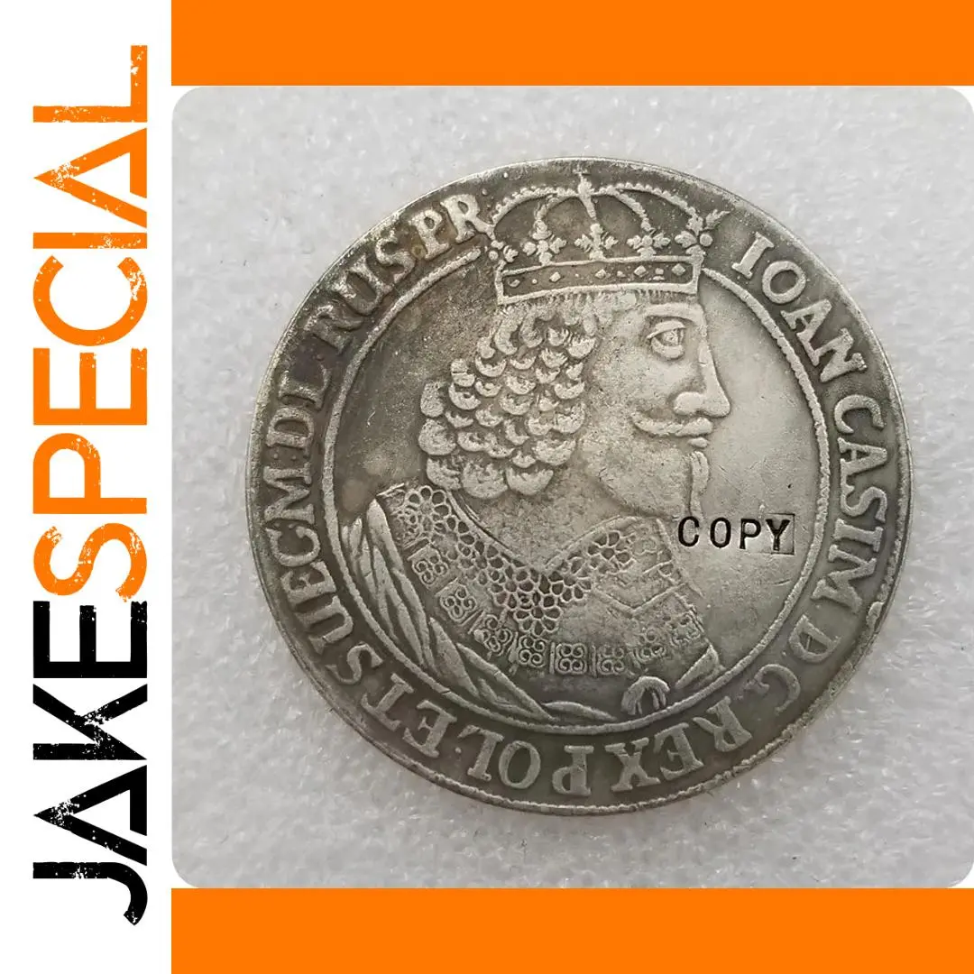 Experience a touch of history with this stunning replica of the Talar – Joan Casimir coin, meticulously crafted to capture the intricate details of the original design. This collectible piece showcases a regal profile of a king adorned with a crowned helmet, adding a majestic presence to your collection. A stamped “COPY” on its surface reinforces its status as a replica, ensuring clarity for all collectors. Made from quality alloys, the coin offers an antique imitation finish that reflects a subtle elegance. Ideal for history enthusiasts or collectors looking to enrich their display, this piece is sure to become a cherished addition.
