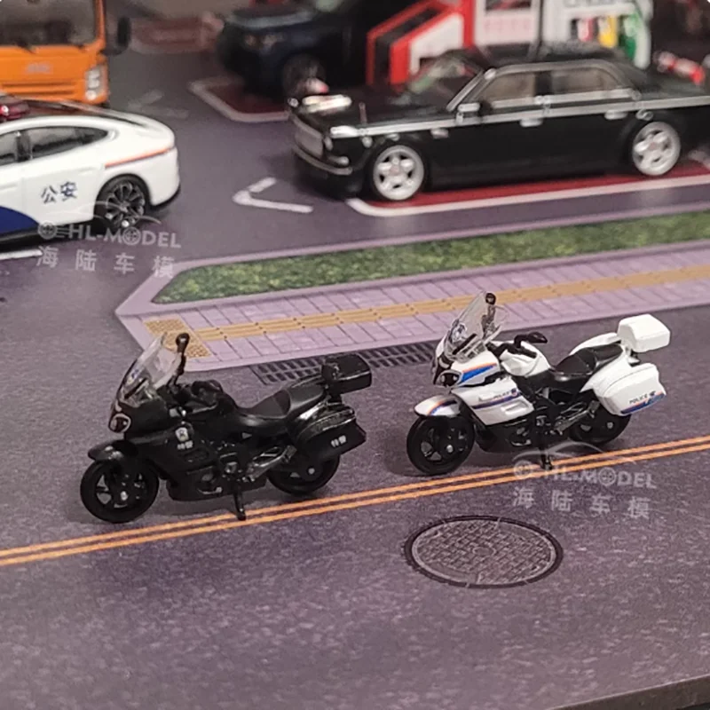 Imagine adding a touch of authority and detailed craftsmanship to your collection with this miniature police motorcycle. Crafted with precision from alloy and plastic, this 1/64 scale model offers a highly realistic and polished appearance, perfect for display or gifting. The sleek design features two color options—public security black and vibrant special police white with blue accents—each showcasing intricate paintwork, crisp lines, and fine details such as mounted side mirrors, windshields, exhaust pipes, and structural elements that mimic actual police bikes. This static ornament allows you to recreate scenes or enhance a display with authentic-looking miniatures. Its durable diecast construction ensures it remains a cherished collectible, adding a sense of realism and authority to any collection.
