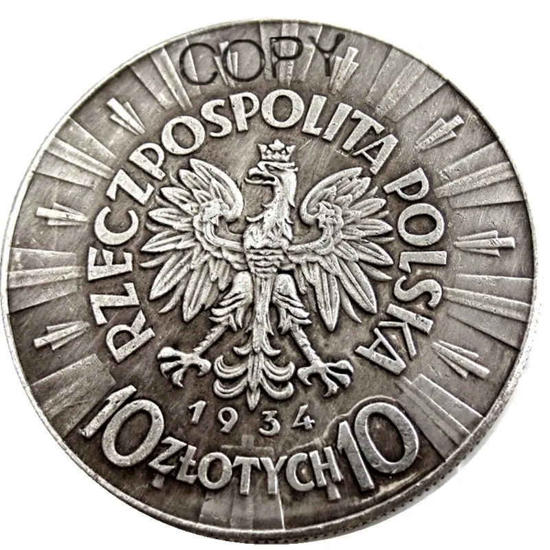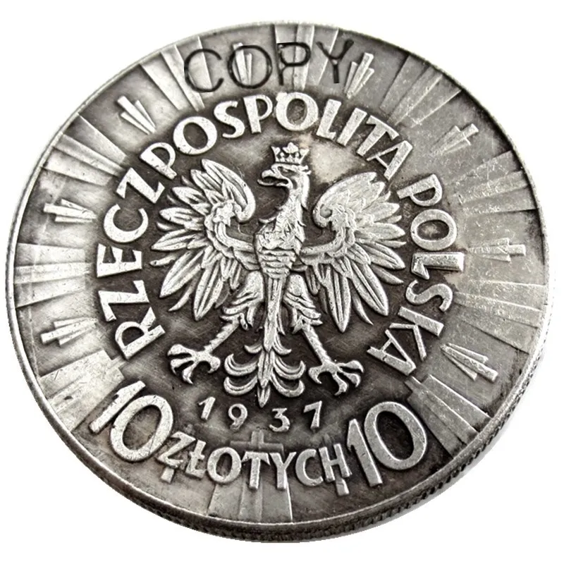 Immerse yourself in history with this stunning set of six replica coins inspired by Poland’s 10 Zlotych currency from 1934-1939. Designed with meticulous attention to detail, each coin showcases a vintage, nostalgic aesthetic reminiscent of old furniture, perfect for collectors or decorative displays. Crafted from durable metal, these coins feature a textured, slightly worn surface that enhances their antique appeal. The set includes six coins, each representing a different year from 1934 to 1939, with subtle color variations that reflect each specific year. The intricate engraved details, including the portrait of a historical figure, symbols, and regional inscriptions, create a realistic, authentic look. Their classic silver finish and ornate borders add to their collectible charm and patriotic theme.