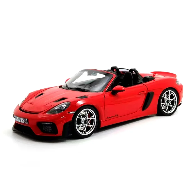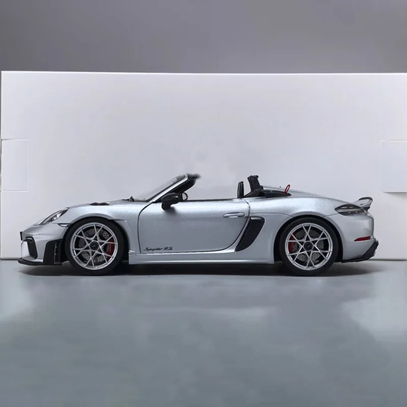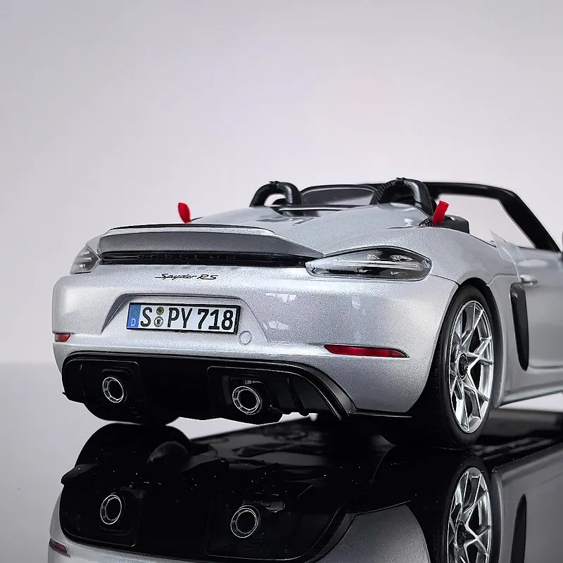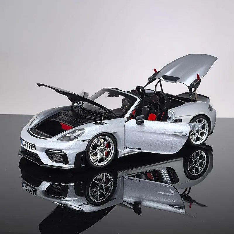 - This 1:18 alloy die-cast model faithfully reproduces the 2023 Porsche 718 Spyder RS’s aerodynamic design with precise contours and high-quality craftsmanship. It captures the sporty, aggressive stance perfectly.