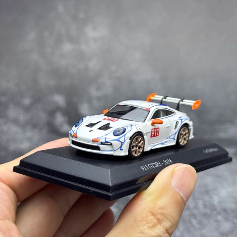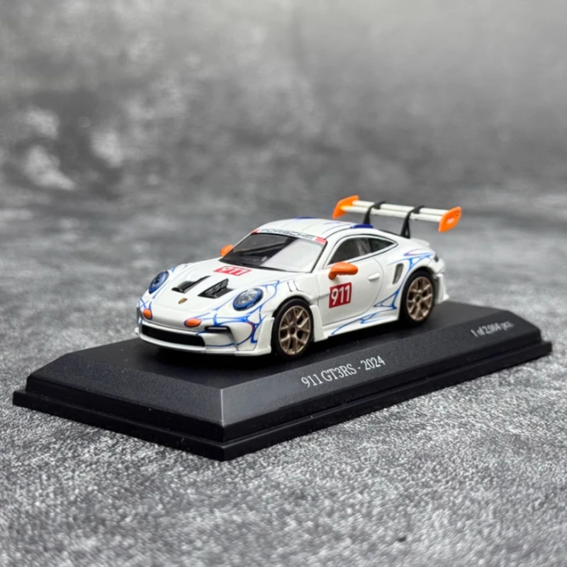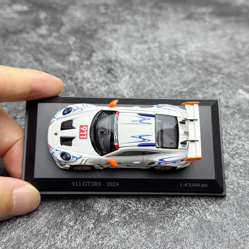 - Highly detailed 1:64 alloy and plastic replica of the Porsche 911 (992) GT3 RS 2024 with accurate body proportions and intricate components.