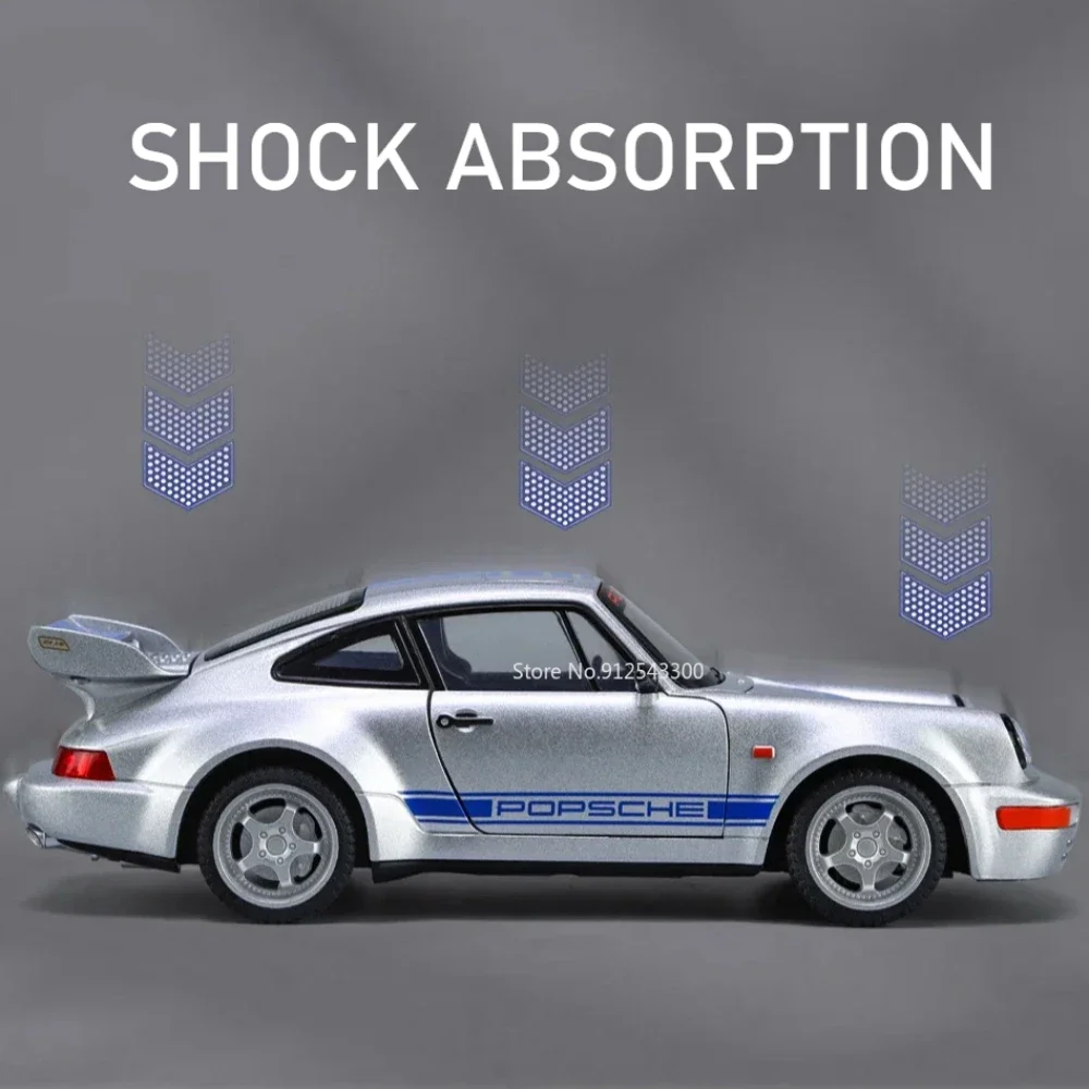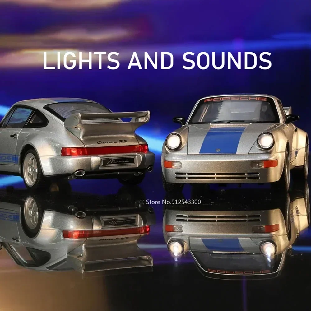 Experience the tactile pleasure of this meticulously crafted Porsche 911 diecast model, designed for enthusiasts who appreciate realistic detail and superb craftsmanship. Its sleek, metallic finish and aerodynamic shape evoke the spirit of the iconic sports car. Available in vibrant colors such as gray, white, black, and orange, this model captures the essence of a real Porsche 911. With functional features including opening doors, sound and light effects, and a pull-back mechanism, it offers an interactive experience. Made from sturdy alloy metal, plastic chassis, and rubber tires, it is built for durability and long-term display. Measuring approximately 20 to 20.5 centimeters in length, this model is perfect for collectors seeking a sophisticated, highly detailed miniature of this legendary vehicle.