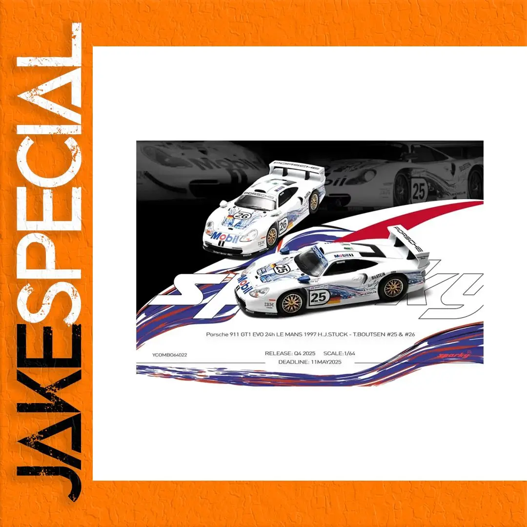 The diecast model of the Porsche 911 GT1 from 1997 is a remarkable addition to any collector's display. Representing the excitement of the Le Mans 24h race, this 1:64 scale model showcases two meticulously detailed cars in striking white with dynamic blue, red, and orange racing graphics. Each car features the prominent “Mobil” logo and racing numbers “25” and “26,” making them a true standout. Crafted from high-quality alloy, this model captures the aerodynamics and elegance of the iconic Porsche design, complete with a distinctive rear wing and realistic small wheels. You can imagine having this exquisite piece displayed proudly in your collection, a testament to automotive excellence.