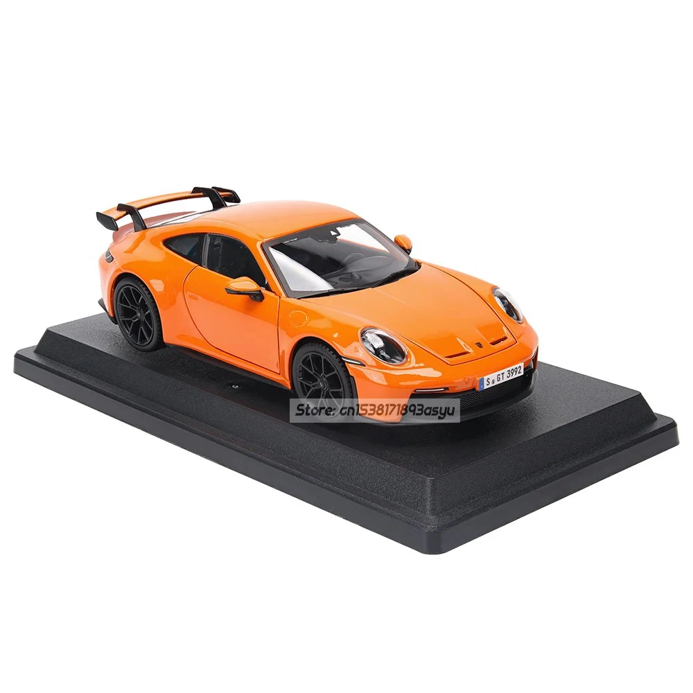 Immerse yourself in the dynamic world of automotive excellence with this meticulously crafted Porsche 911 GT3 die-cast alloy model car. Featuring a vibrant orange-red metallic finish, this model showcases sleek, aerodynamic contours that highlight its sporty, performance-oriented design. The glossy surface reflects light beautifully, evoking a real car’s elegance and speed. Black accents on the side mirrors, side detailing, wheels, and rear spoiler create a striking contrast that enhances its visual appeal. The transparent windows reveal a glimpse of the detailed interior, further elevating its realism. Designed for collectors and enthusiasts, this model embodies both technical precision and aesthetic finesse—perfect for display or as an impressive gift.