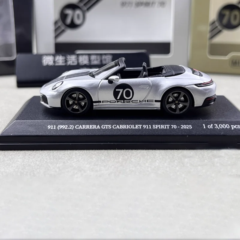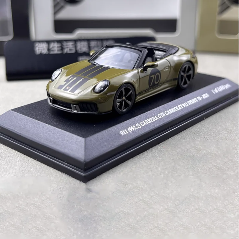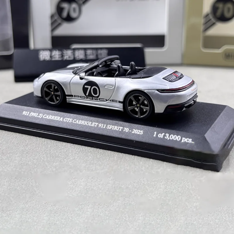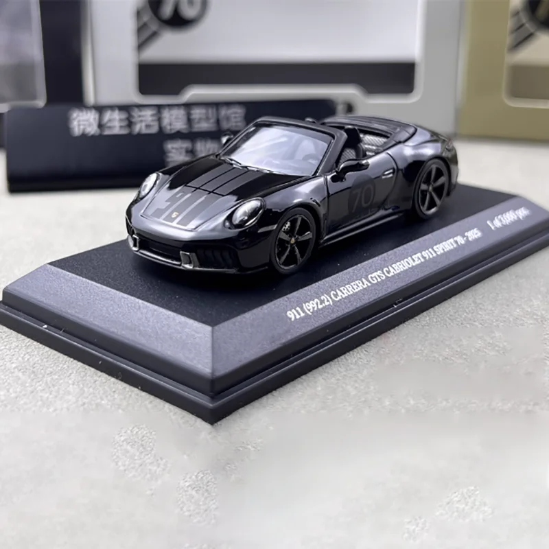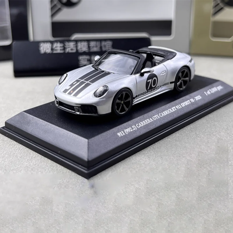Enhance your collection with this highly detailed 1:64 scale diecast model of the Porsche 911 GTS Carrera, crafted from alloy and plastic materials. Finished in a sleek metallic silver with a contrasting black roof, the model features realistic details such as distinctive headlights, a sculpted hood, black rims with low-profile tires, and body contours that capture the iconic Porsche silhouette. Its static display design makes it a perfect collectible ornament or gift, with dimensions measured manually for accuracy. Suitable for adult enthusiasts, this non-movable model is free from hazardous chemicals and offers a refined, modern aesthetic to any collection.