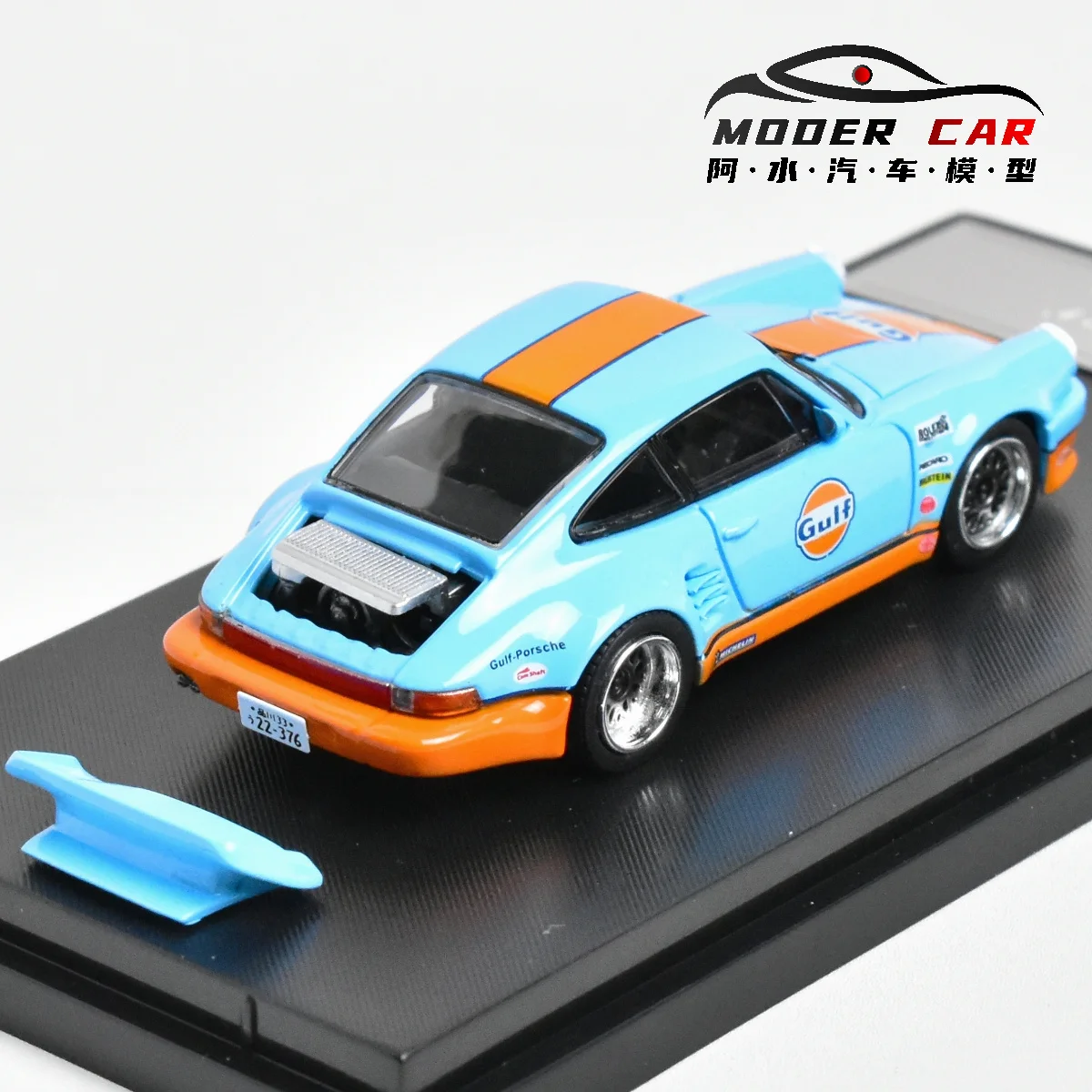 Experience the charm of the Master 1:64 scale Diecast Model Car, replicating the iconic Porsche 930 911 design in a striking light blue with vibrant orange accents. This meticulously crafted model features the legendary Gulf Oil logo, detailed headlights, and a prominent rear wing that captures the essence of racing design. The black multi-spoke wheels and visible exhaust details add to its authenticity, while the durable metal construction ensures a premium feel. With no battery or electric features, this car is perfect for collectors seeking an exquisite piece that radiates quality and style, making it a standout addition to any collection.