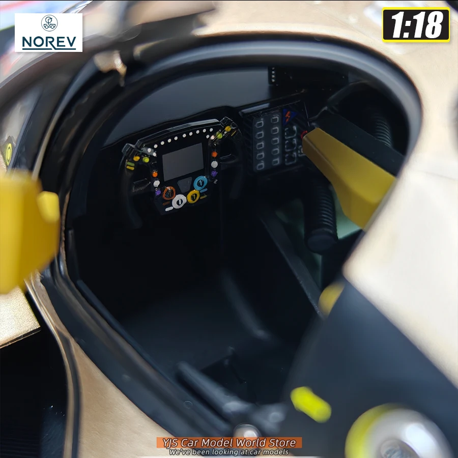 - The model features highly detailed aerodynamic components, including a rear wing, front splitter, and side mirrors, meticulously crafted to reflect real racing features.