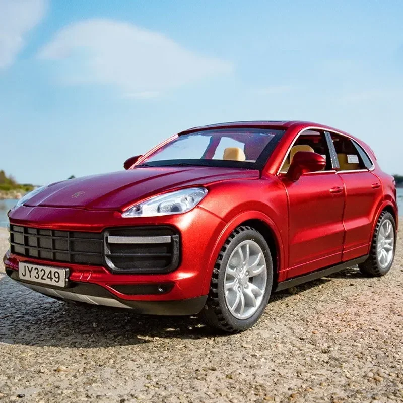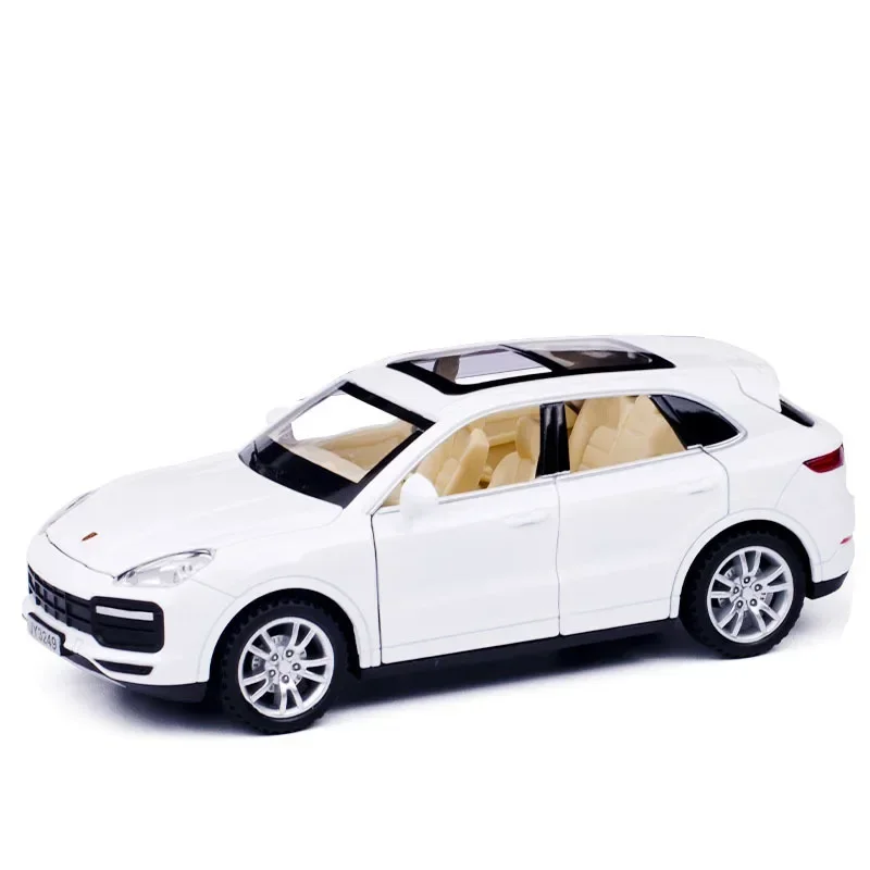 Imagine adding the stunning 1:32 scale model of the Porsche Cayenne Turbo to your collection. Crafted from durable diecast metal and plastic, this model features a sleek white exterior complemented by the iconic Porsche branding. Measuring 15.5 cm in length, 6.2 cm in width, and 5.4 cm in height, it boasts finely detailed components, including illuminated headlights and a panoramic sunroof. The inner light beige interior is visible through the windows, making this model a true masterpiece that captures the essence of the actual luxury vehicle. With sound and light functionalities, this model provides an engaging visual experience, affirming your exquisite taste in automotive collectibles.