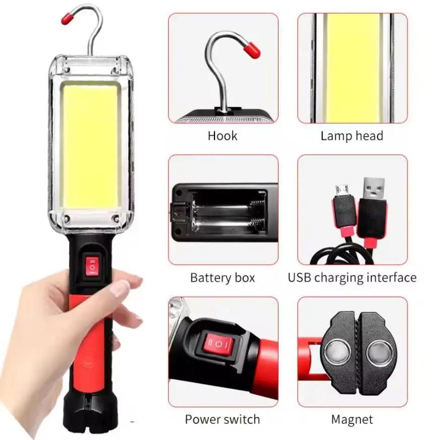 - Features a magnetic suction base, flexible hook, and clip for easy hanging and hands-free operation, ideal for repairs, camping, or night fishing trips.