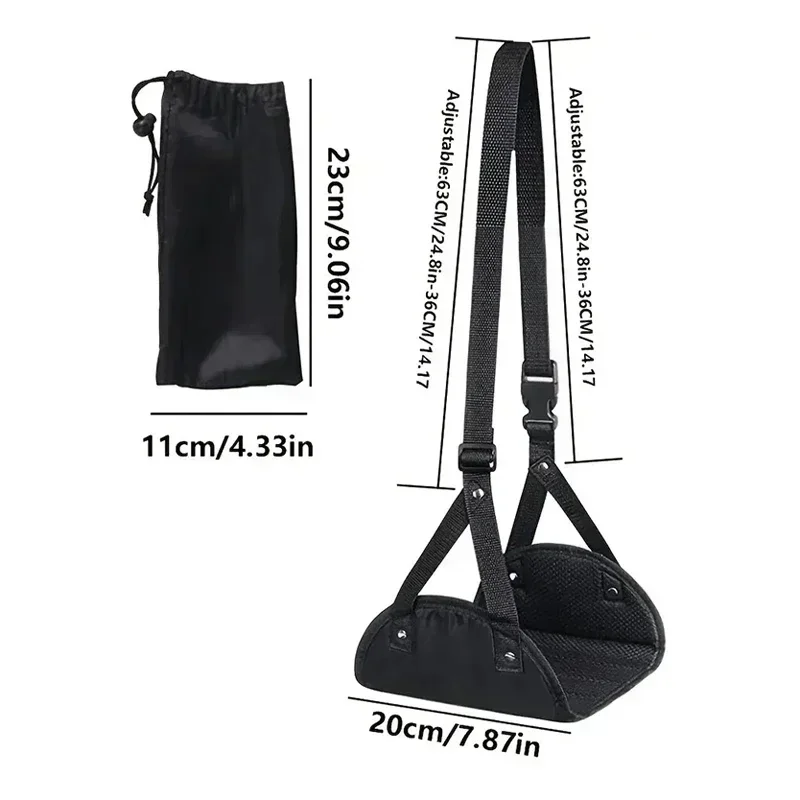 Transform your travel experience with this sleek, portable footrest hammock. Imagine arriving at your destination feeling refreshed, pains eased, and ready to enjoy your day. Its simple, effective design ensures quick setup and effortless portability—perfect for frequent travelers, commuters, and busy professionals who value comfort without hassle. Invest in this lightweight support accessory today and enjoy more relaxing trips, whether you're flying, driving, or working from your desk. Make comfort your top priority and turn travel moments into a pleasant, enjoyable experience whenever you need it most.