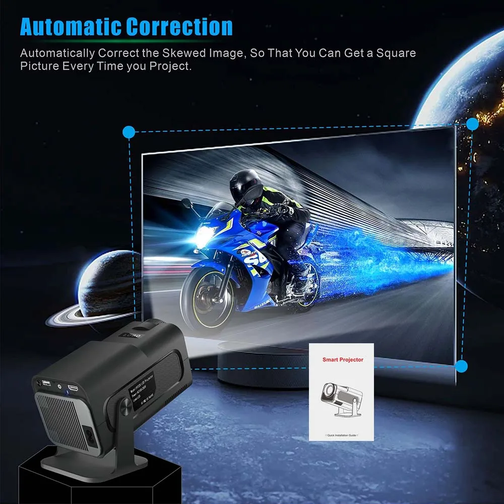 - Built-in rechargeable battery, manual and automatic image correction, 180° free projection, and lightweight, portable design with adjustable projection angle.