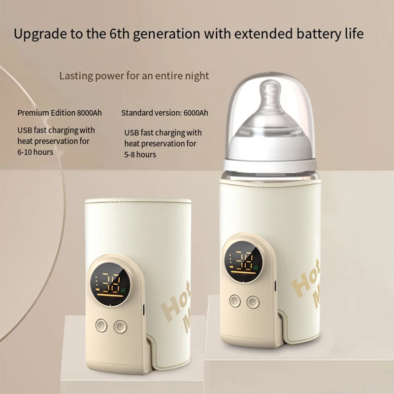 Experience convenient feeding with this sleek, portable baby bottle warmer featuring a beige and transparent design. Equipped with a high-capacity USB rechargeable power source of 6000mAh or 10000mAh, it offers on-the-go heating and sterilization. Crafted from safe, chemical-free materials suitable for newborn skin, it ensures peace of mind. The smart temperature control guarantees precise warming, maintaining your baby’s milk or food at the perfect temperature. Its multifunctional design combines dual-purpose heating and sterilization, making it an essential tool for parents who value safety, practicality, and modern elegance, whether at home or on the move.