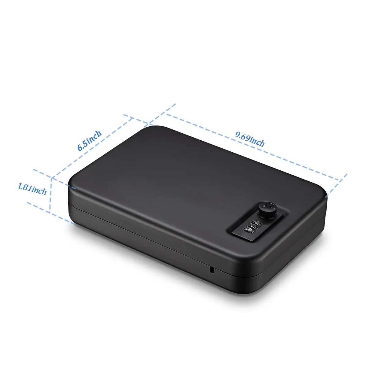 Experience peace of mind with this sleek, black portable gun safe that combines durability and modern design in a compact size. Crafted from fireproof, solid steel with a corrosion-resistant powder coating, this safe provides robust protection for your valuables. Its minimalist, rectangular shape features a smooth top surface with a subtle rounded edge, emphasizing strength and simplicity. Equipped with a reliable, non-battery digital combination lock and a sturdy dial, it offers quick access while maintaining high security. Lightweight at only 2.73 pounds, it is perfect for travel, home, or vehicle use. The included steel cable allows you to securely fix the safe to any stationary object, preventing theft or unauthorized access. Enjoy dependable security with this elegant and practical safe.