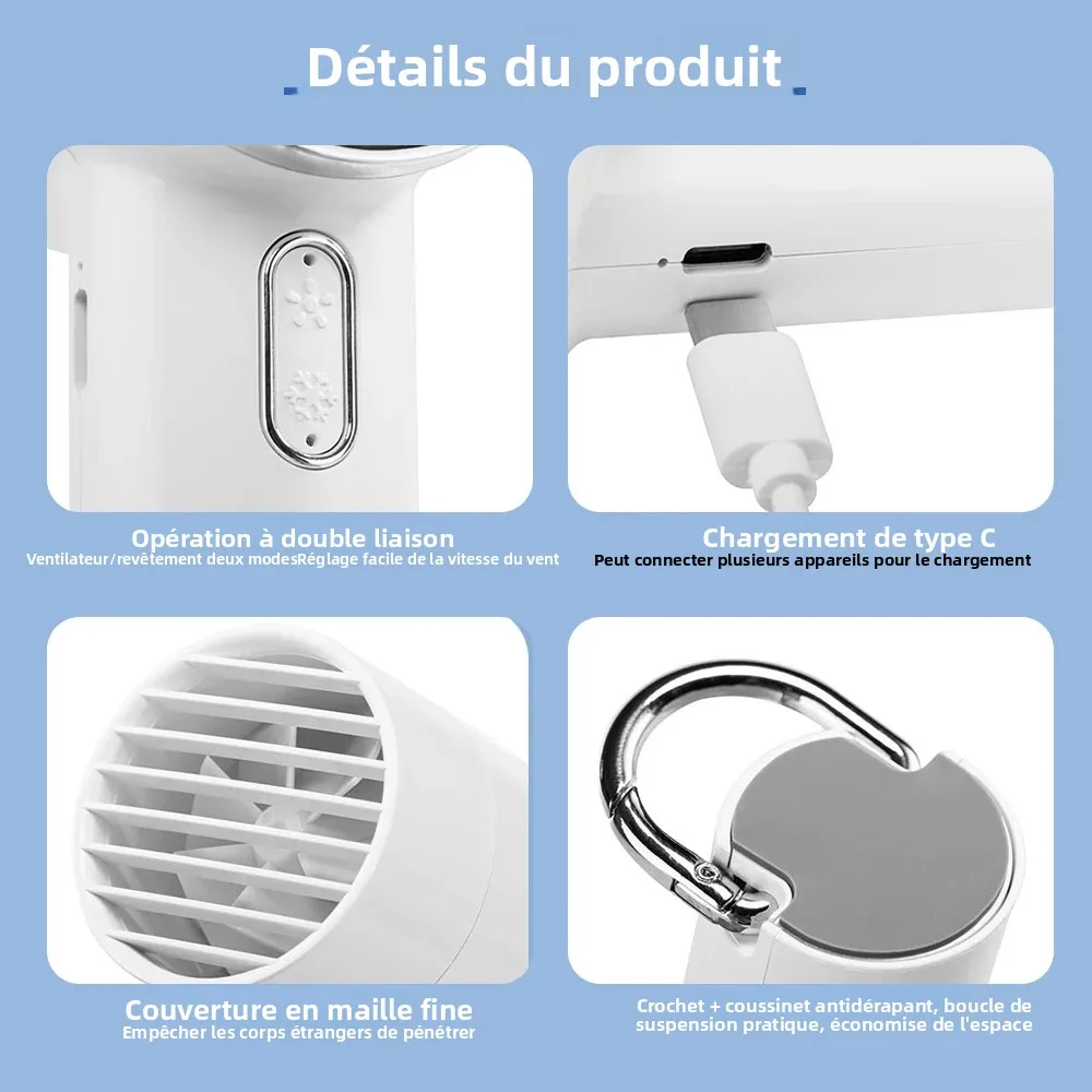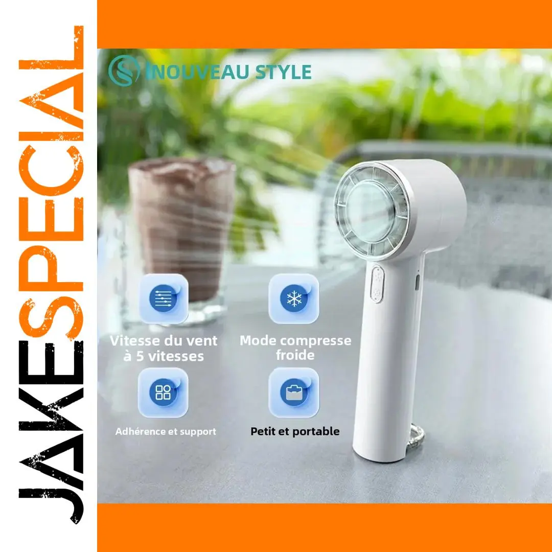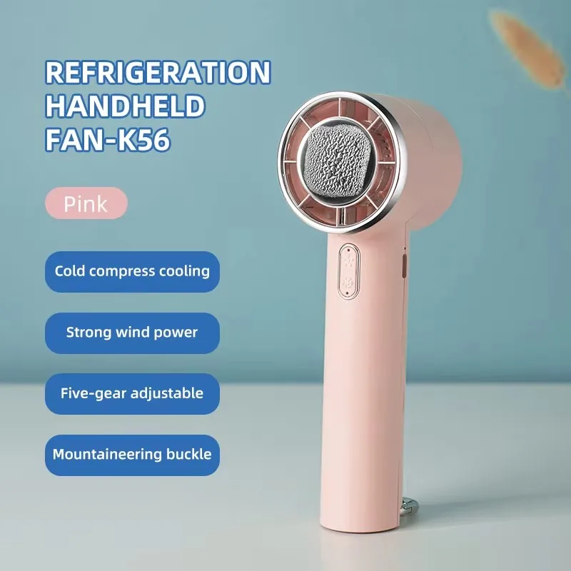 Experience ultimate portability with this sleek handheld fan featuring 5 adjustable wind speeds, a 1200mAh rechargeable battery offering up to 6 hours of use, and rapid 3-second cooling with semiconductor refrigeration. The model with cold compress mode includes an ice-cold option for instant relief, while both variants boast an ergonomic design, angle-adjustable head, and a versatile hanging mount for outdoor or wall use. Its lightweight construction, pull-out buckle for desktop conversion, and quiet operation (36dB-45dB) make this device perfect for travel, outdoor activities, or daily comfort. Available in stylish pink and white, this compact fan seamlessly combines functionality and modern aesthetics.