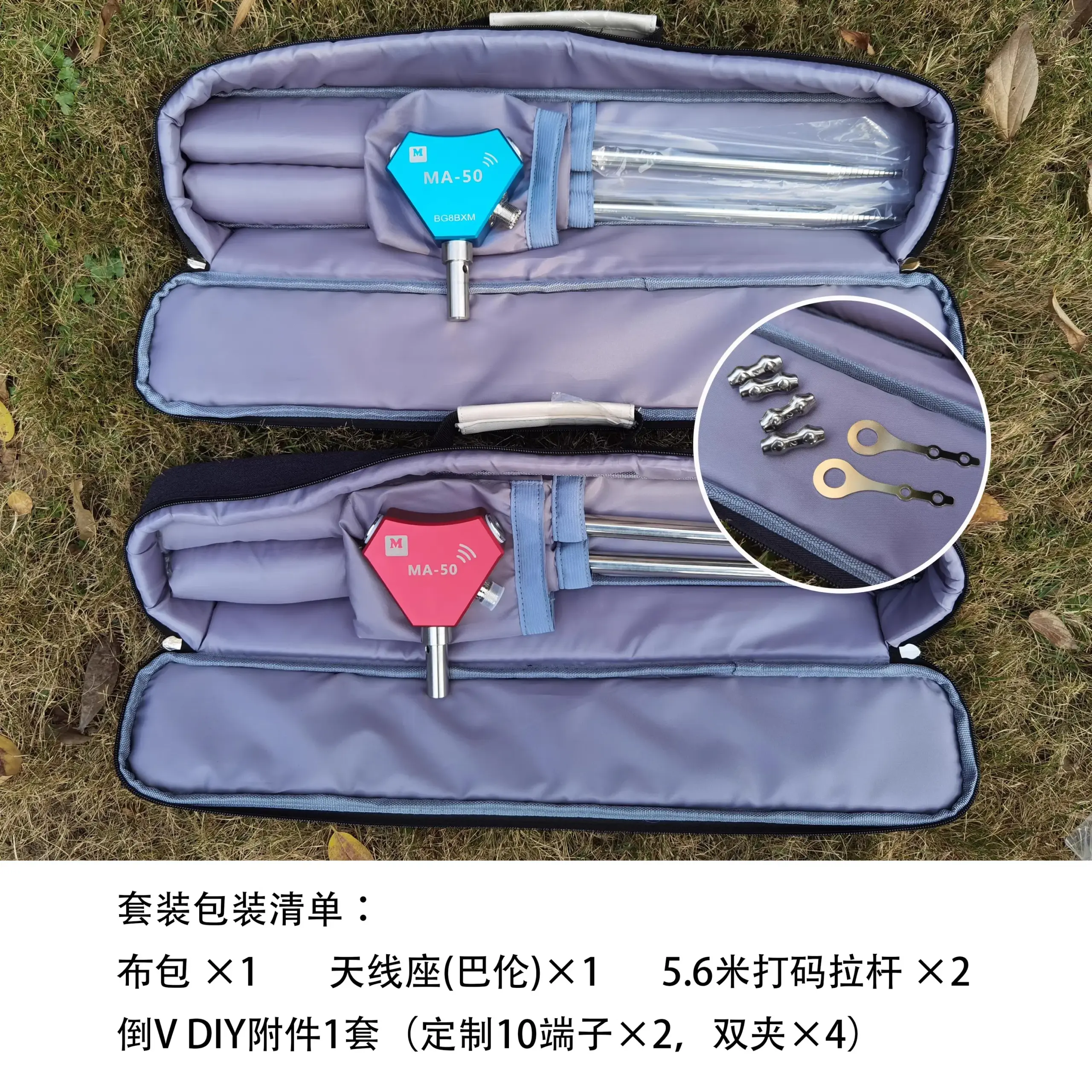 Experience the versatility and performance of this this portable MA-50 HF antenna, designed for outdoor shortwave radio enthusiasts. With a striking red or blue color option, it features an octagon-shaped central hub with clear white markings and a sleek aluminum alloy build. The telescopic aluminum rods extend up to 5.6 meters, offering efficient frequency coverage from 14 to 50 MHz, with support for DIY modifications below 14 MHz. Its robust construction includes brass-colored connectors and anodized balun base, ensuring durability and stability in outdoor environments. Weighing only 1430 grams, this antenna comes with a practical carrying bag, making setup quick and effortless for mobile or portable operations. Ideal for enthusiasts who value technical precision and reliable performance, this antenna elevates your shortwave listening experience with style and technical excellence.
