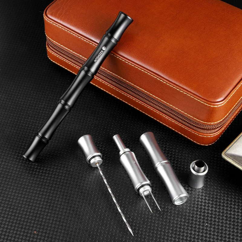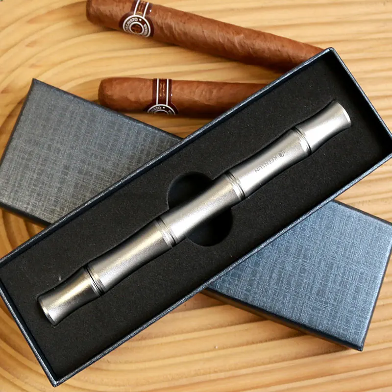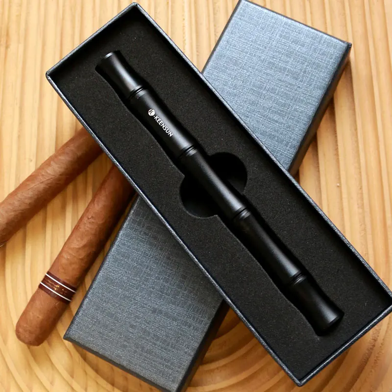- Features a compact, lightweight design resembling a pen, providing portability and ease of use for on-the-go cigar enthusiasts.