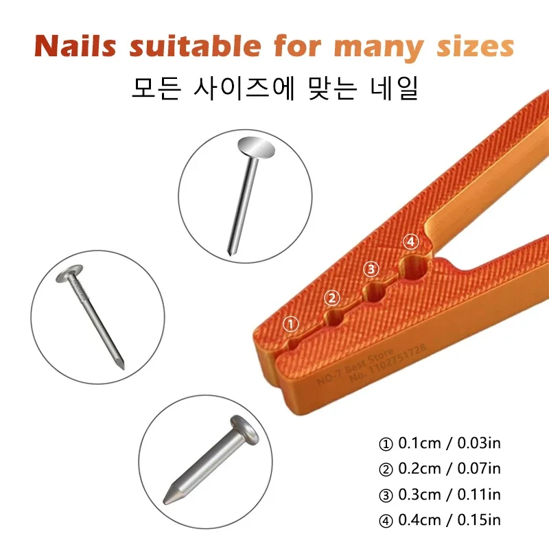 Achieve precise and safe nail placement with this lightweight, reinforced ABS plastic nail fixing tool, available in portable (10.2 cm, 1–4 mm nails, orange, black, white) and professional (24 cm, 0.2–5 mm nails, blue, red, black) versions. Featuring an ergonomic, textured grip and adjustable grooves for multiple nail sizes, it ensures accuracy and safety during woodworking, carpentry, and DIY projects. Designed for manual hammering, this versatile tool reduces finger injuries and improves efficiency, making it ideal for home repairs, trim installations, and more. Available in 1 or 2-piece sets, it combines durability with ease of use in a compact, modern design.
