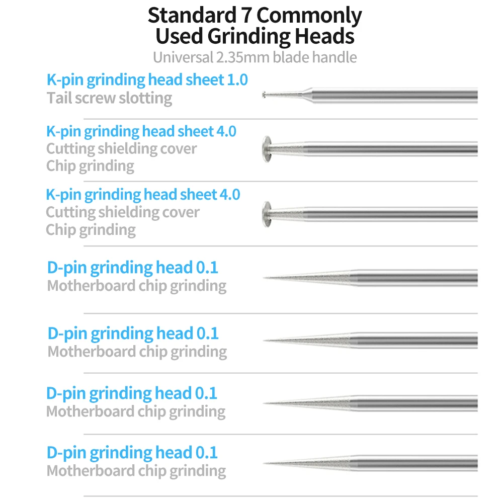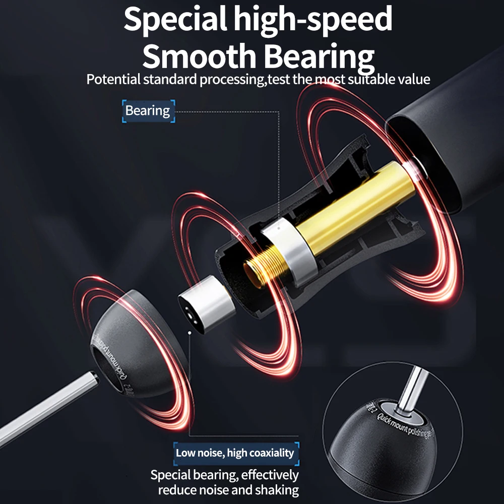 - Includes high-precision bearings for smooth, low-noise operation and a variety of interchangeable metal tips for polishing, cutting, or engraving tasks at detailed levels.