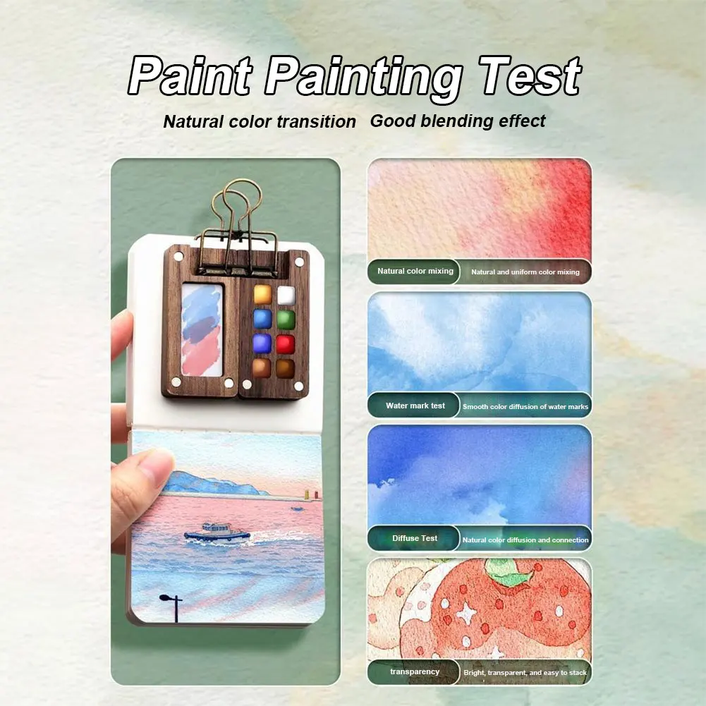 Imagine having this stylish, compact watercolor kit always within reach, ready to bring your ideas to life wherever inspiration strikes. Crafted with a polished, natural wooden box, this set exudes elegance and simplicity, blending premium craftsmanship with practicality. Its carefully designed compartments, including an 8-grid palette measuring 60x60mm and a larger 15-grid palette at 150x75mm, organize vibrant, high-quality watercolor paints for seamless blending and detailed work. Complete with three durable pens, a soft-cover sketchbook, and a secure clip, this set is tailored for artists and students alike—ideal for urban sketching, travel, or quick studies. Lightweight yet comprehensive, it transforms any moment into a creative opportunity with ease and style.