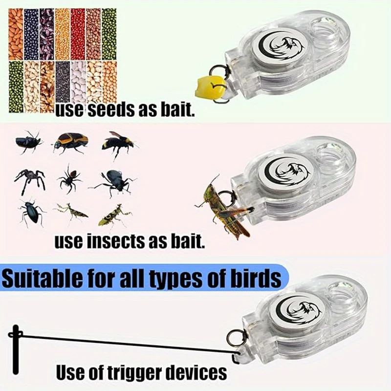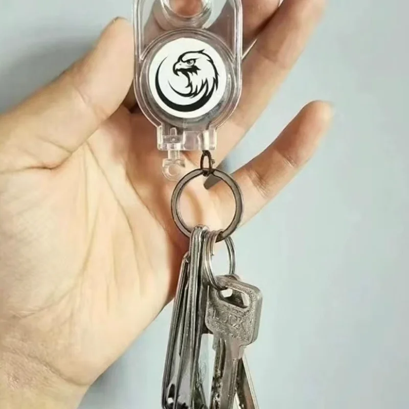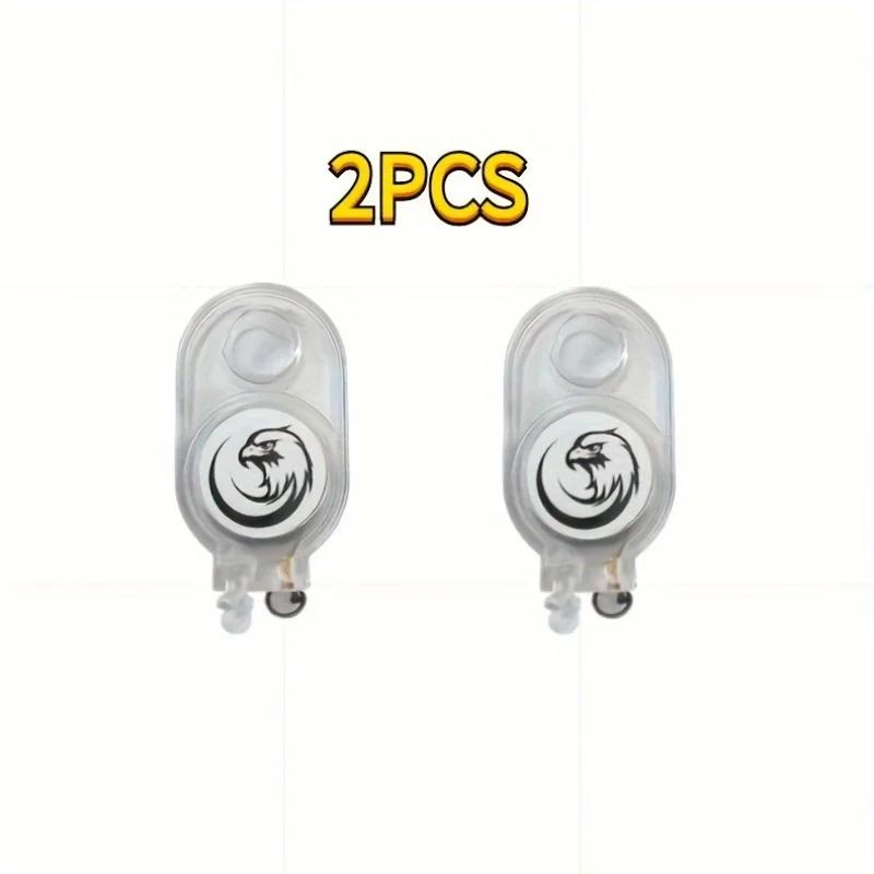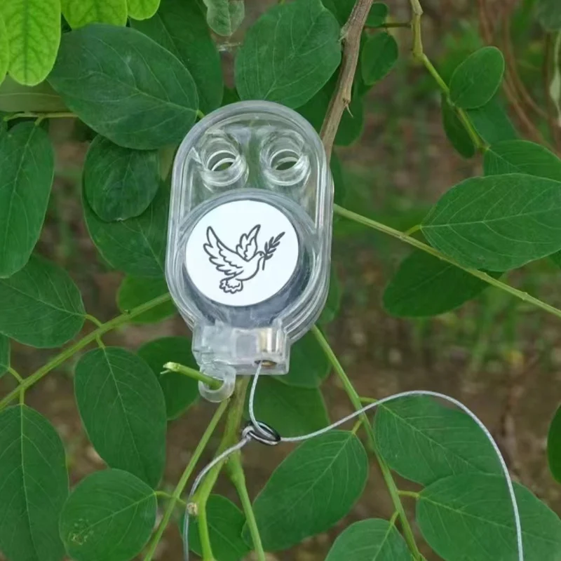This durable, lightweight multi-functional hunting keychain set includes two white plastic trap clips with quick-setting mechanisms, designed for efficient poultry management. Made from sturdy PE material, these keychains are perfect for capturing chickens and ducks in farm environments. With a sleek, transparent oval shape and featuring a bold black and white eagle logo, the design emphasizes practicality and simplicity. The compact size ensures easy handling and secure attachment to keys or equipment. Suitable for professional poultry handling, these keychains are a reliable tool for farm animal control, combining functionality with a clean, modern aesthetic.