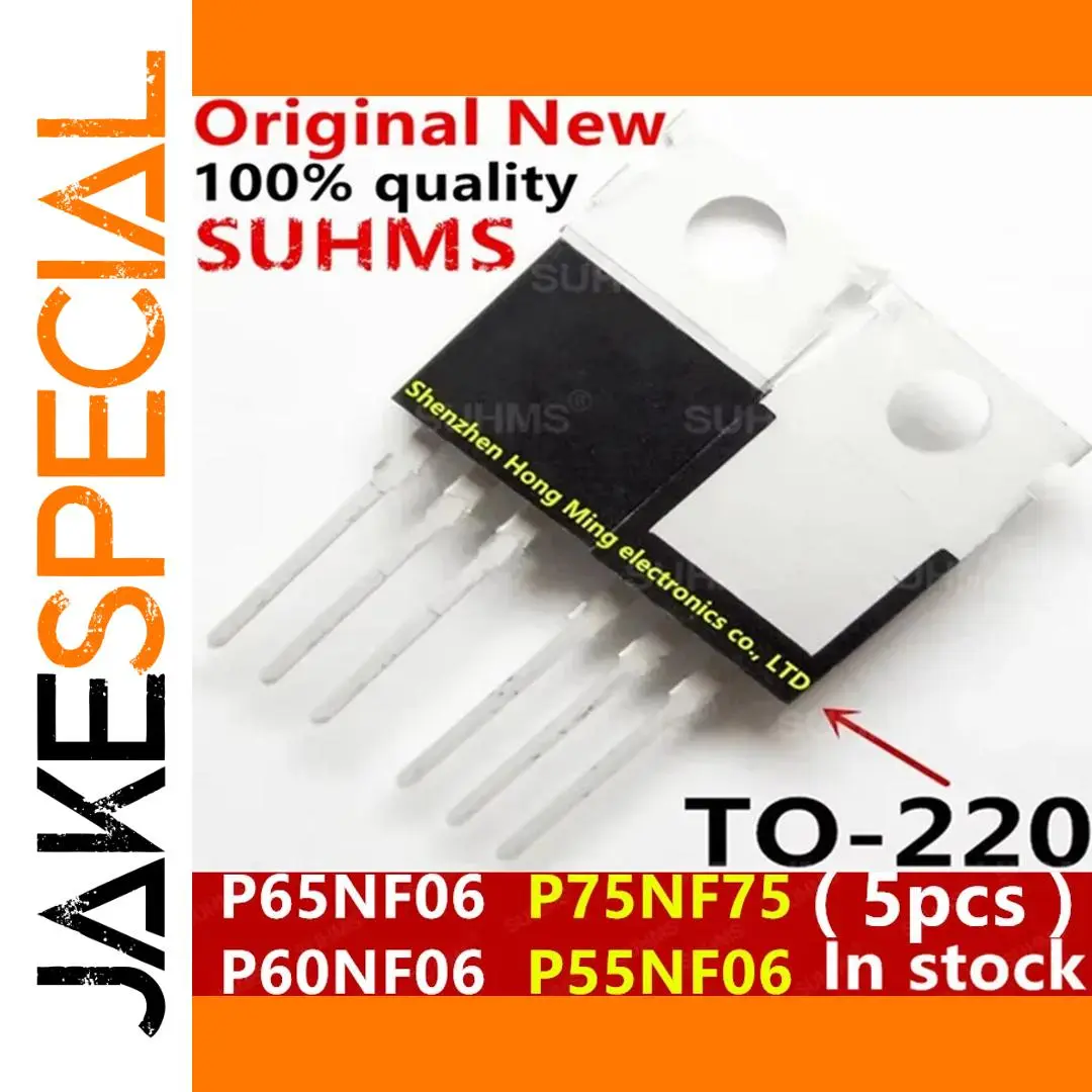 - Includes five fresh drive ICs: P65NF06, P60NF06, P75NF75, P55NF06, and STP55NF06, all housed in TO-220 packages suitable for various power switching needs.