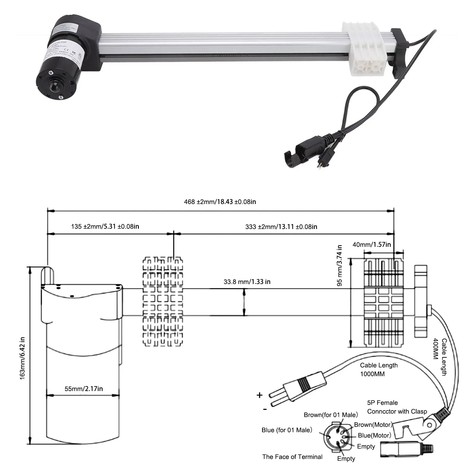 Experience seamless relaxation with this sleek and durable power recliner sofa motor actuator. Crafted from lightweight aluminum and ABS, it features a modern silver-gray finish that complements various furniture styles. Its compact design ensures easy integration into electric sofas, lift chairs, and massage chairs, providing reliable movement and support. With a stroke length of 13.11″ and a thrust capacity of 1000N, it offers powerful, smooth operation. Operating quietly below 55 decibels, this actuator enhances comfort without noise distraction. Designed with IPX4 water-resistance and a sturdy plastic mounting connector, it ensures durability and easy installation. This industrial-grade component combines precision engineering with streamlined aesthetics, making it an excellent choice for transforming your furniture into smart, functional pieces.