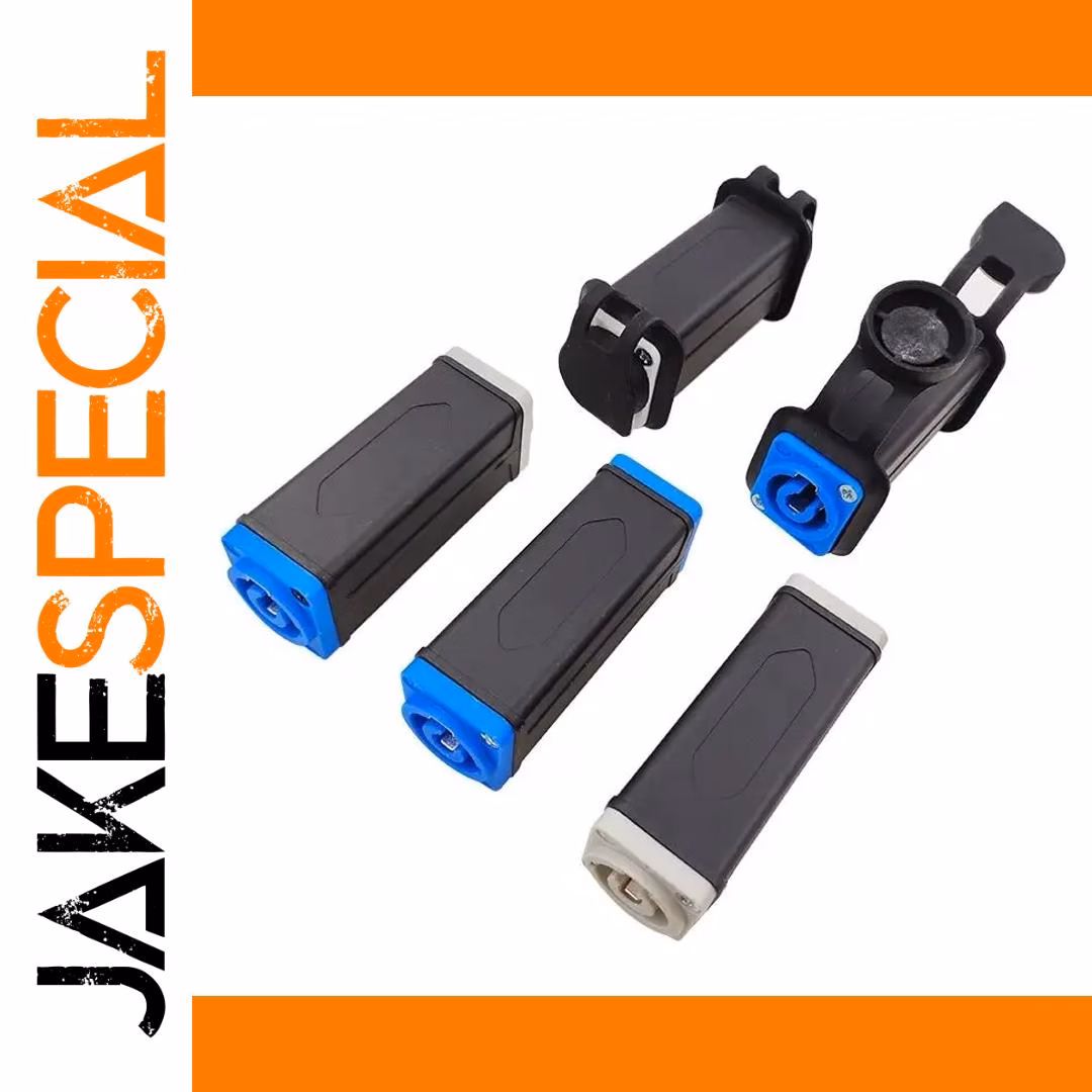 Experience the reliability and durability of this set of ten high-quality LED PowerCon AC coupler adapters, expertly designed for professional audio, video, and lighting setups. These adapters boast a sleek, rectangular shape made from tough plastic, combining industrial strength with a clean, modern look. The front features color-coded locking sockets—blue, white, or a blue-white combination—facilitating quick identification and secure connections. The circular locking mechanisms with groove details ensure a tight, lockable fit, preventing accidental disconnection during performances or installations. Backed by robust construction, each adapter supports a current of up to 16A at 250V AC, with a lifespan exceeding 1,000 cycles. Their compact, straight profile makes them ideal for tight spaces and panel mounting, promising longevity and dependable performance.