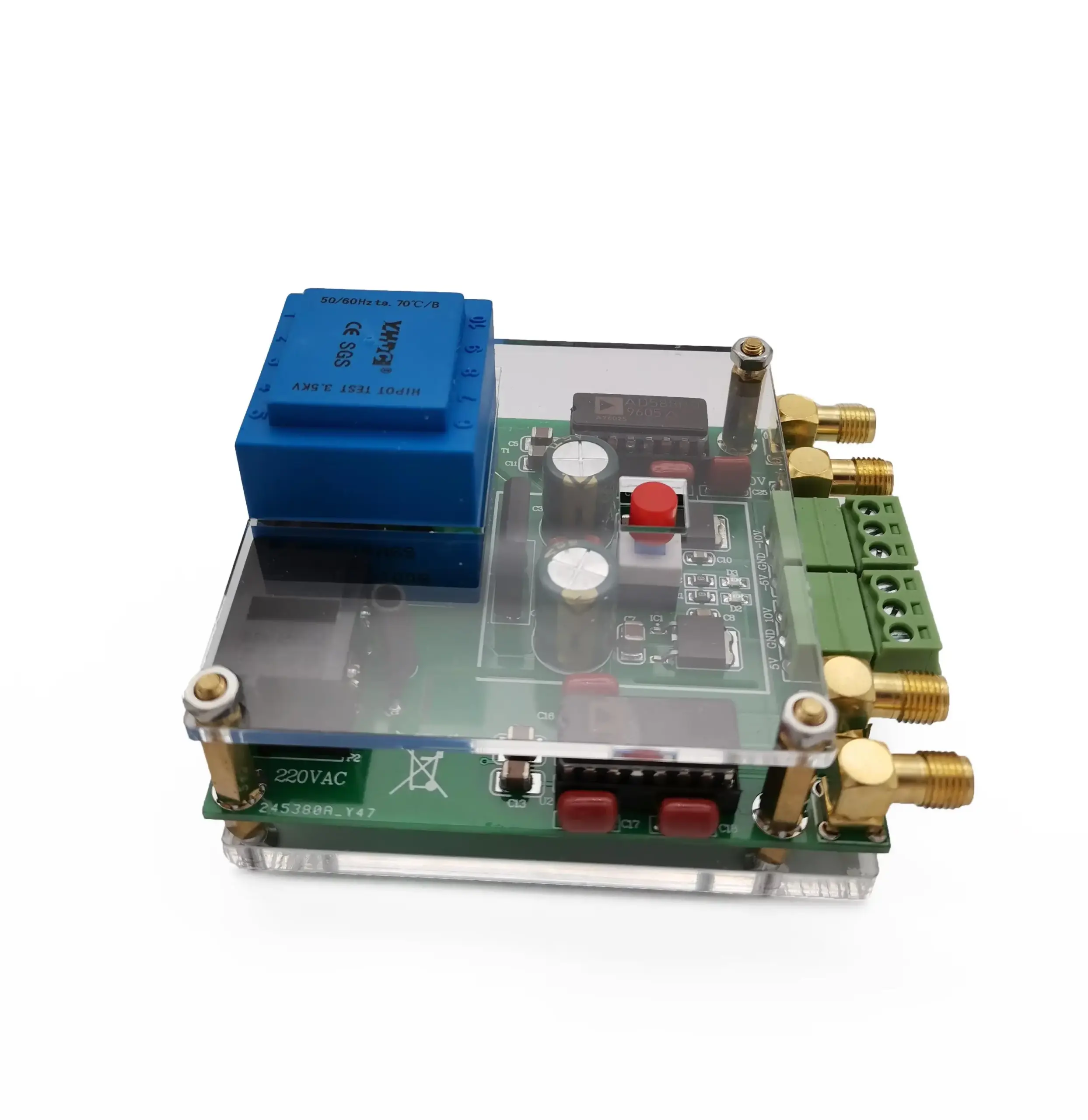 Experience precise voltage output with this high-quality AD588 module, designed to deliver stable ±5V and ±10V signals for your sophisticated electronic projects. Encased in a transparent acrylic shell, its clean and modern appearance combines aesthetic appeal with functional engineering. The vibrant blue film capacitor and large red and black electrolytic capacitors create a striking visual contrast that highlights the module’s high-tech design. Its compact 75mm by 65mm size makes integration easy, while the integrated 220V AC transformer and fuse protection ensure reliable performance and safety. Whether you're calibrating precision equipment or developing critical measurement systems, this module’s accurate ±1.5mV voltage stability offers exceptional dependability, enhancing your workflow and boosting confidence in your results.