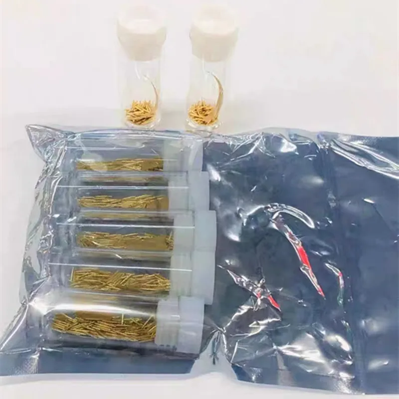 Experience the reliability of these high-quality test probes, meticulously designed for electronic diagnostics. Crafted from durable metal with a striking gold-colored finish, each probe offers excellent conductivity and longevity. The sleek, shiny surface reflects skilled craftsmanship, while the slim, straight shafts ensure precise contact. Variations in tip design, including pointed, flat, forked, and hook-shaped contacts, cater to a wide range of testing applications. With a standard length of 6.1 mm, these probes are ideal for detailed circuit analysis and BGA semiconductor testing. Their customizable, spring-loaded construction provides flexibility and secure connections. Incorporating thoughtful design and superior materials, these probes enhance your testing setup with professional accuracy and confidence.