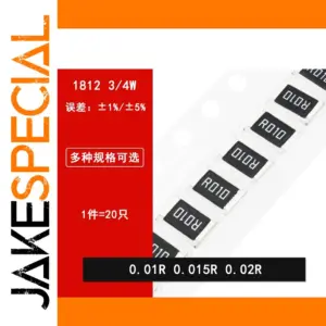 Experience the reliability and precision of this set of 20 surface-mount resistors, ideal for advanced electronic projects. Featuring sleek, rectangular black bodies with crisp white print, these resistors provide a modern, high-tech aesthetic. Their compact 1812 size (approximately 4.5mm by 3mm) ensures streamlined integration into circuit boards. Designed with high-quality materials, they offer resistance values of 0.01Ω, 0.015Ω, and 0.02Ω, with either 5% or 1% tolerance to suit high-precision applications. The clear plastic carrier enhances ease of handling and placement, making your assembly process more efficient. Whether you're refining power management or signal processing, these resistors promise consistent performance and durability for your electronics.
