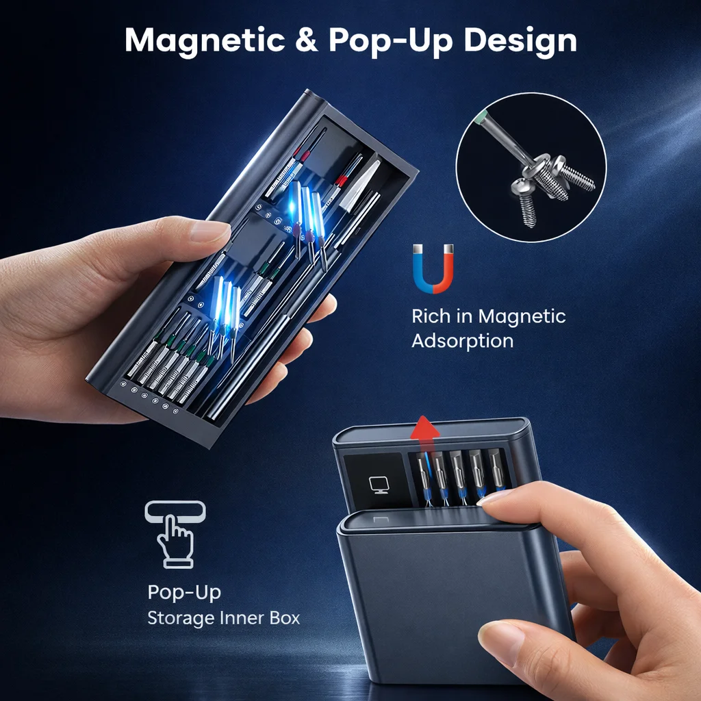 Upgrade your repair kit with this sleek, highly functional precision screwdriver set today—designed for convenience, durability, and professional-grade results. Whether you’re fixing smartphones, tablets, or other electronics, this set provides everything you need for quick, accurate work. Ideal for technicians and DIY craftspeople, once you experience the quality and organized setup, you'll wonder how you ever managed without it. Invest in this set now to have a reliable, long-lasting tool that makes your repair tasks smoother and more enjoyable.