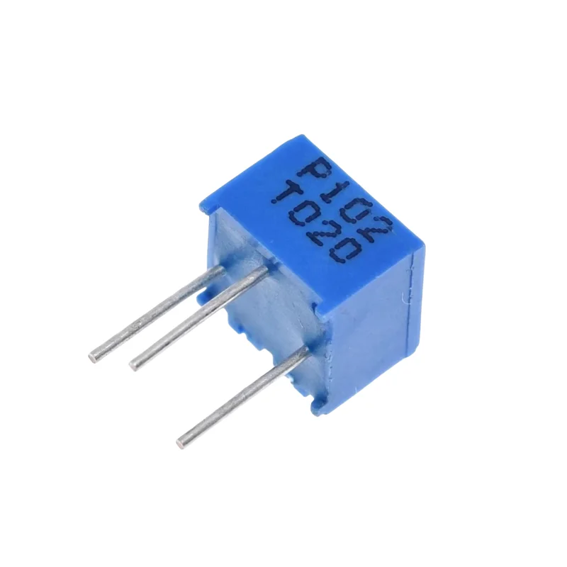 Experience superior control with this set of high-quality, blue-colored, precision variable resistors. Designed for fine-tuning electronic circuits, each component features a compact rectangular housing with a circular, toothed adjustment knob. The sleek blue finish enhances the professional, industrial look while ensuring durability. Featuring a resistance range from 100Ω to 2MΩ, these resistors provide versatile options for various applications. They boast a stability level of 10% and an accuracy of 1%, allowing precise resistance adjustments. The long, shiny metal pins enable easy mounting onto circuit boards and ensure reliable electrical connections. Whether used in audio equipment, instrumentation, or custom electronics, these resistors deliver high precision, stability, and durability that you can trust for your most sensitive projects.