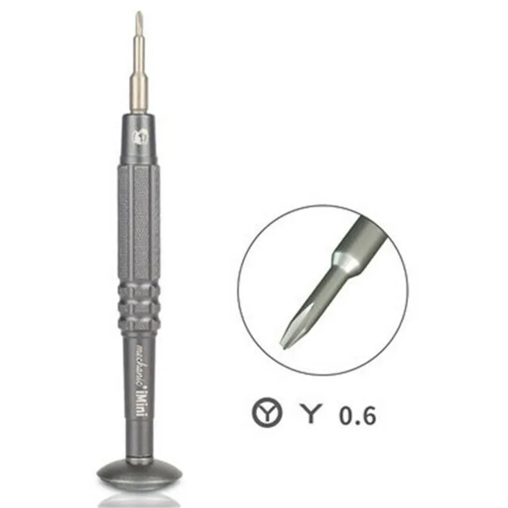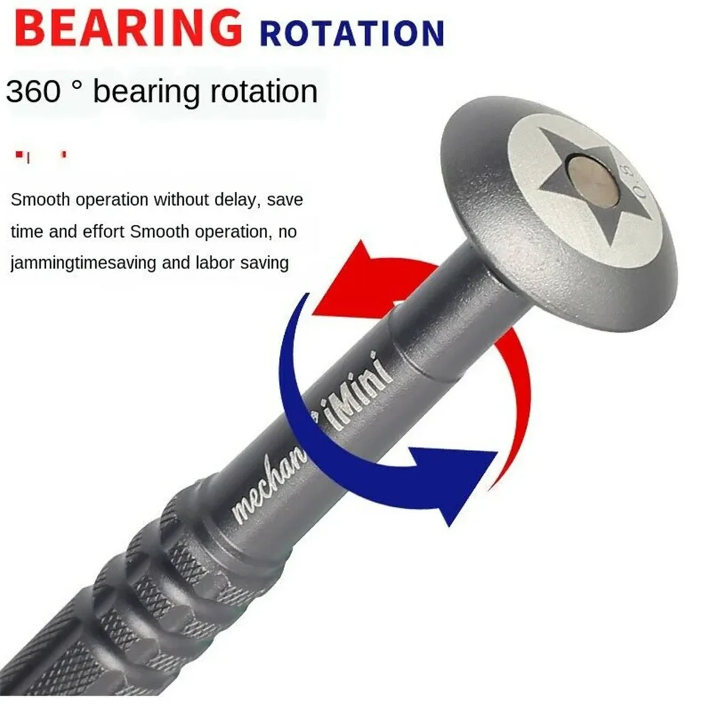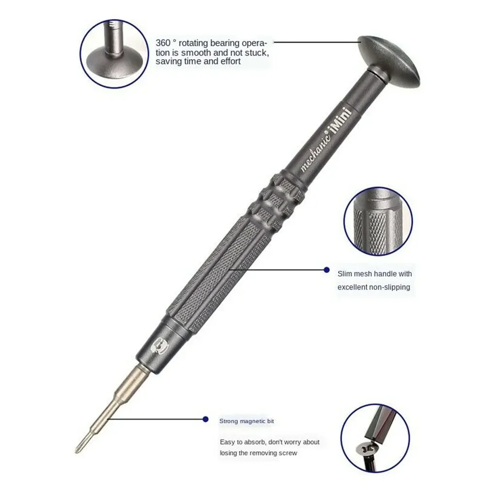 This high-hardness multifunctional screwdriver set features alloy steel bits with a hardness of HRC56-59°, a 360° smooth rotation bearing for effortless operation, and a slim, anti-slip handle for precision. It includes magnetic screwdriver bits in sizes Y0.6, T2, 0.8mm, 1.2mm, 1.5mm, and 2.5mm, with a 36mm bit length and 97mm handle length, ideal for meticulous repairs on mobile phones, cameras, glasses, and electronic devices. Designed for removing screws from Apple and Android smartphones, this set is especially suitable for motherboard and tail plug screws, including models like iPhone 7 and above, ensuring durable and precise disassembly.