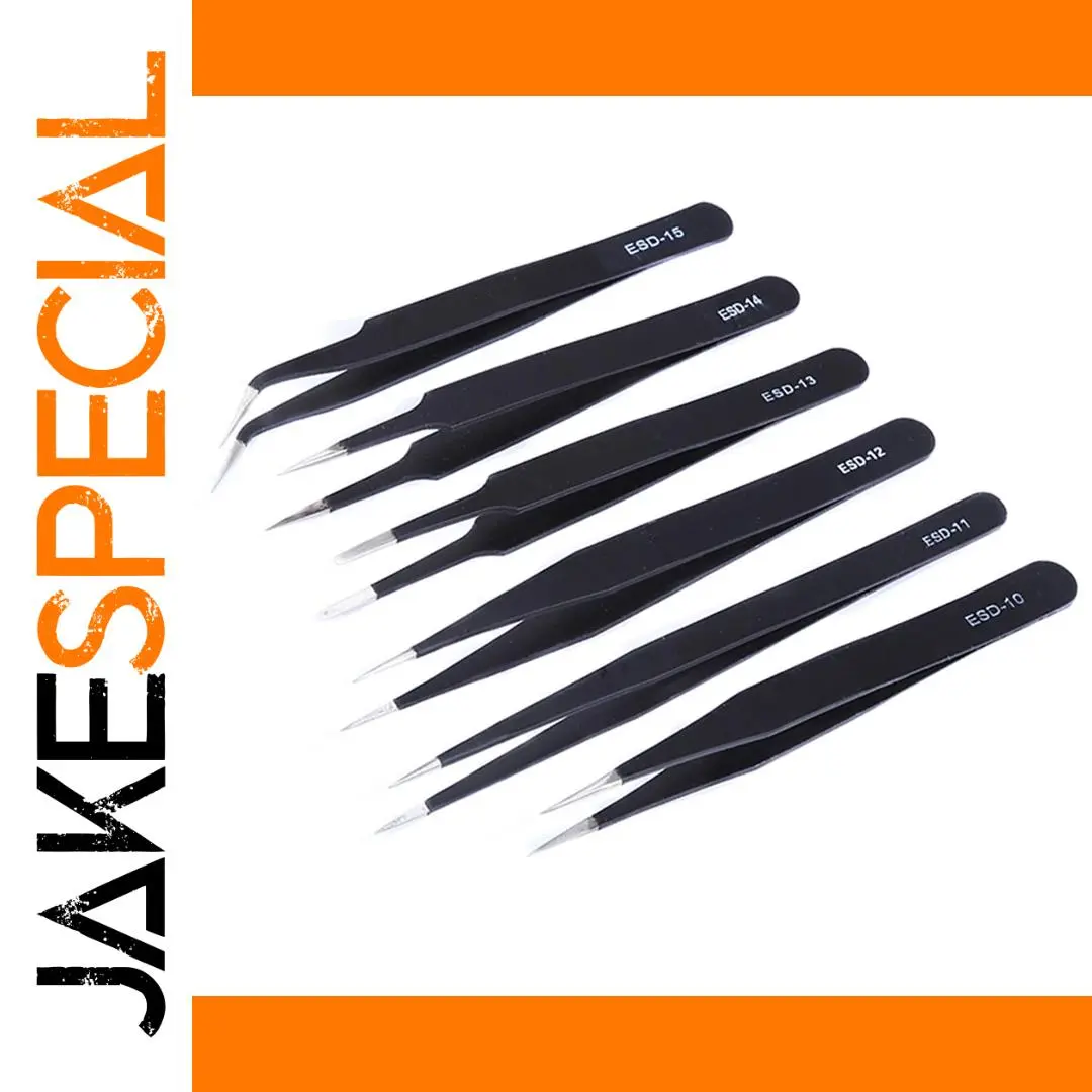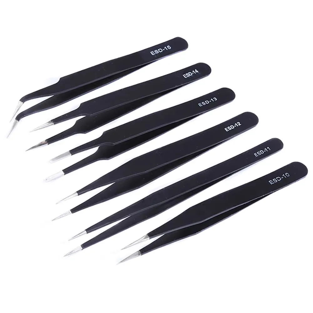 - Includes six tailored anti-static tweezers with models ESD-10 to ESD-15 for versatile electronic repair needs.