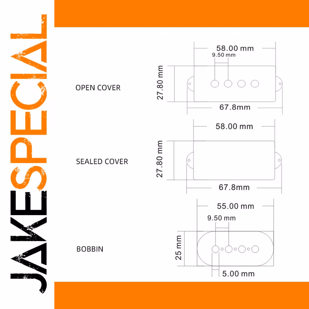 - Open and sealed cover designs, both with precise dimensions of approximately 58 mm width, 27.8 mm height, and 67.8 mm depth, ensuring a perfect fit for PB pickups.