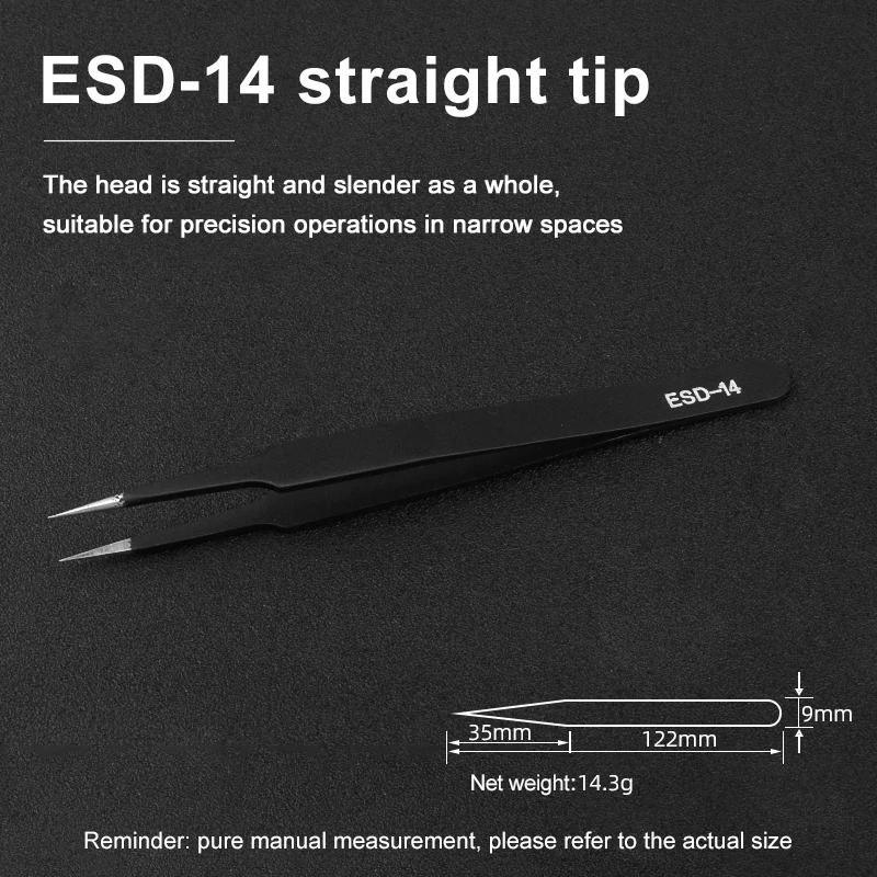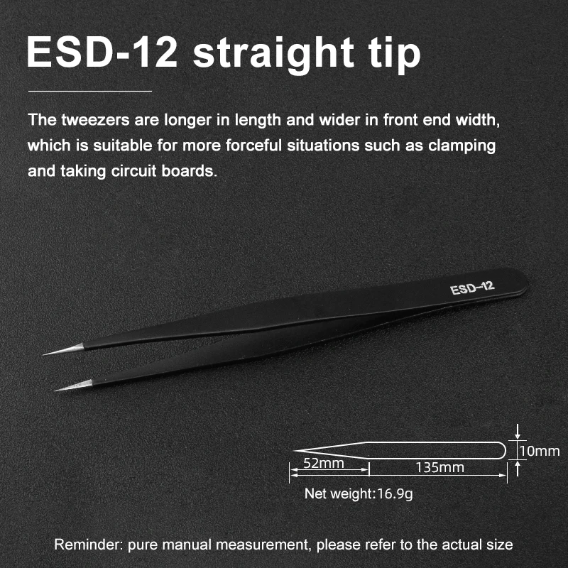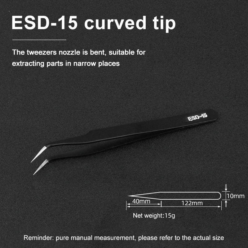Seamlessly integrate these professional-grade tweezers into your toolkit and enjoy the precision, comfort, and durability they offer. Whether you're repairing circuit boards, handling microelectronics, or assembling complex devices, this tool provides dependable performance every time. Elevate your craftsmanship confidently with a tool designed for demanding precision work. Don't miss out—experience the difference these high-quality tweezers can make in your projects now!