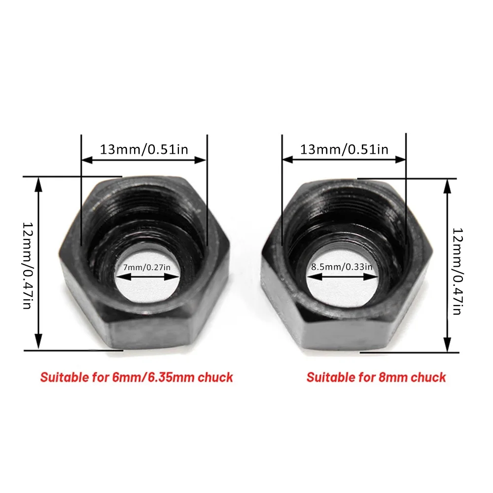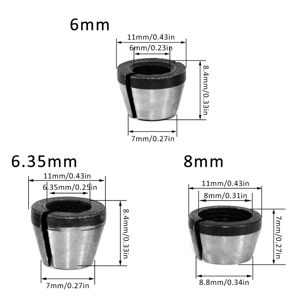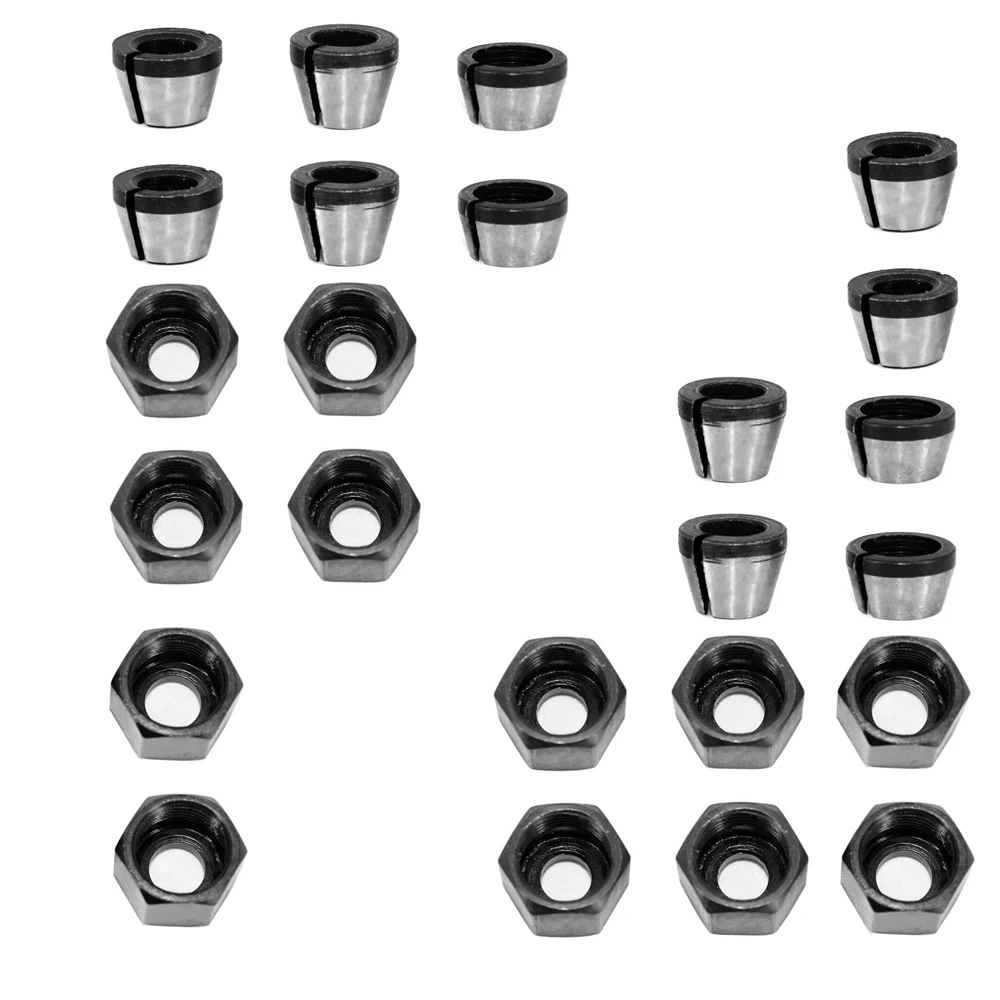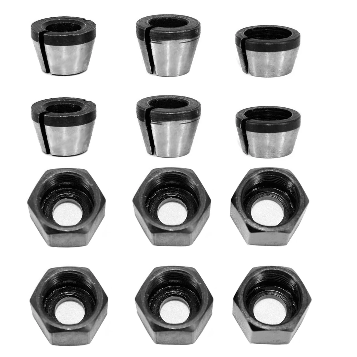 Experience reliable precision with this durable set of collet chuck adapters crafted from high-quality carbon steel, designed to handle sizes of 6mm, 6.35mm, and 8mm. Available in packages of 3, 6, 12, or 24 pieces, each includes matching nuts for secure installation. Ideal for woodworking, engraving, trimming, and milling applications, these adapters facilitate seamless conversion for electric and wood routers. Their stable, high-performance construction ensures long-lasting use, making them a versatile addition to your toolkit. Elevate your projects with a professional-grade set built for accuracy, ease of use, and robust durability.