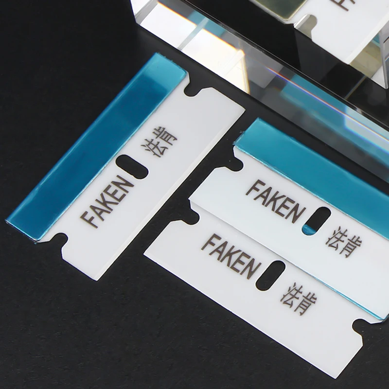 Experience exceptional accuracy with this multifunctional ceramic blade, expertly crafted for delicate tasks such as phone screen repair and UV glue removal. Its sleek, sharp design allows precise single-sided cuts, making it perfect for electronics enthusiasts and professionals alike. The ceramic material provides outstanding durability and a smooth, non-metallic edge that minimizes damage to fragile screens. Mounted on a stylish, white plastic support with semi-circular cutouts, the blade features a vibrant blue protective film on its upper edge, adding a modern touch. Whether you're working on small electronics or detailed DIY projects, this blade ensures a safe, clean, and efficient process. Trust this versatile tool to elevate your repair work and handle detailed tasks effortlessly.
