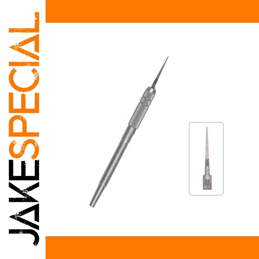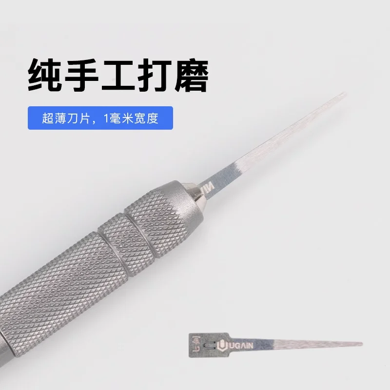 This high-toughness, soft chip removal blade by SAYTL is designed for precise mobile phone motherboard repairs, ideal for removing CPU IC glue and solder residues. Featuring a slim, silver-finished stainless steel handle with a textured grip area for secure handling, the blade extends from the top with a sharp, pointed tip that tapers for delicate, detailed work. Available in multiple color options including “007 blade,” “008 blade,” and “chip removal blade,” this versatile tool ensures durability and precision for electronics repair. Its minimalist, professional design combines high-quality materials with an essential function, making it a reliable choice for technical repair enthusiasts and professionals alike.