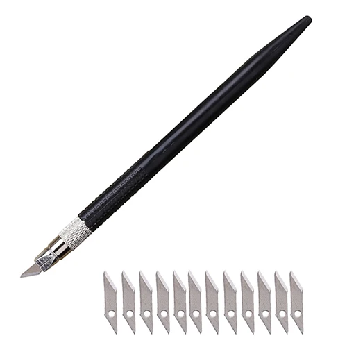 Experience the ultimate control and precision with this Precision Craft Set, designed for intricate carving, engraving, and crafting projects. The sleek black handle features a textured, non-slip surface, ensuring a secure grip as you work. With 13 interchangeable stainless steel blades in vibrant colors—black, blue, green, pink, purple, and white—this set promotes easy identification and organization. Each blade, measuring approximately 145mm in total length, is sharp and pointed, making it ideal for various applications like woodworking, model making, and PCB work. This comprehensive set is perfect for both hobbyists and professionals, guaranteeing exceptional results in all crafting endeavors.