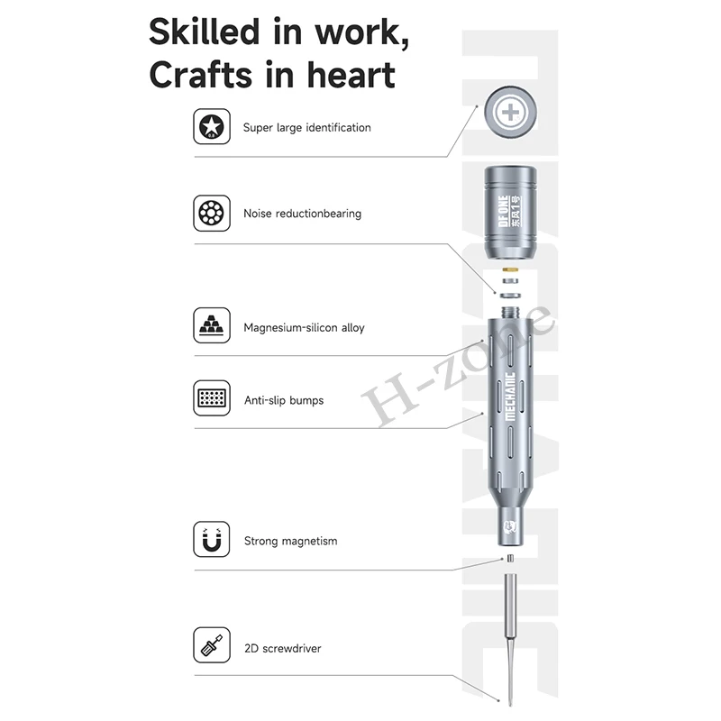 Imagine effortlessly repairing your mobile devices, with a set that combines style, durability, and precision in your hand. The sleek, metallic design features a uniform silver finish, enhanced with subtle grooves and indentations for a confident grip. The interchangeable tips allow you to tackle various screws—flathead, Phillips, Torx, hex, or square socket—making every task smoother. Crafted from high-quality steel, each screwdriver ensures durability and resilience, perfect for disassembly or maintenance of smartphones, tablets, and other electronics. Whether you're a professional technician or a DIY enthusiast, this set provides unmatched precision, safety, and ease. Upgrade your toolkit with these polished, reliable tools designed for ultimate performance and comfort.