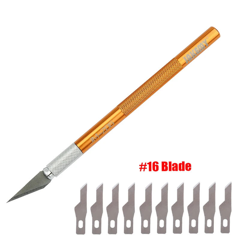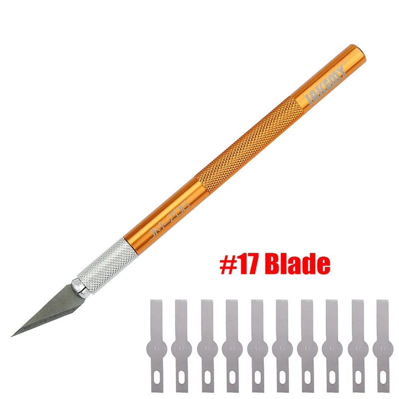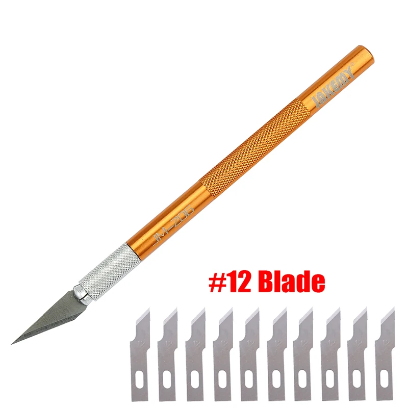 This versatile carving and engraving set features a sleek, ergonomic design with a non-slip aluminum alloy handle measuring 11.4mm in length and a total length of approximately 138mm. It includes multiple sharp, stainless steel blades with a ≤60° angle and 2mm length, perfect for detailed woodworking, PCB and motherboard work, screen film removal, sculpture, paper crafting, model making, etching, and degumming. The set offers customized, replaceable blades without spring force or locking mechanism, ensuring precise control for craft, repair, and artistic projects. The bold metallic orange handle with textured knurled surface provides durability, grip, and a modern aesthetic, making it an essential tool for demanding detailed work.