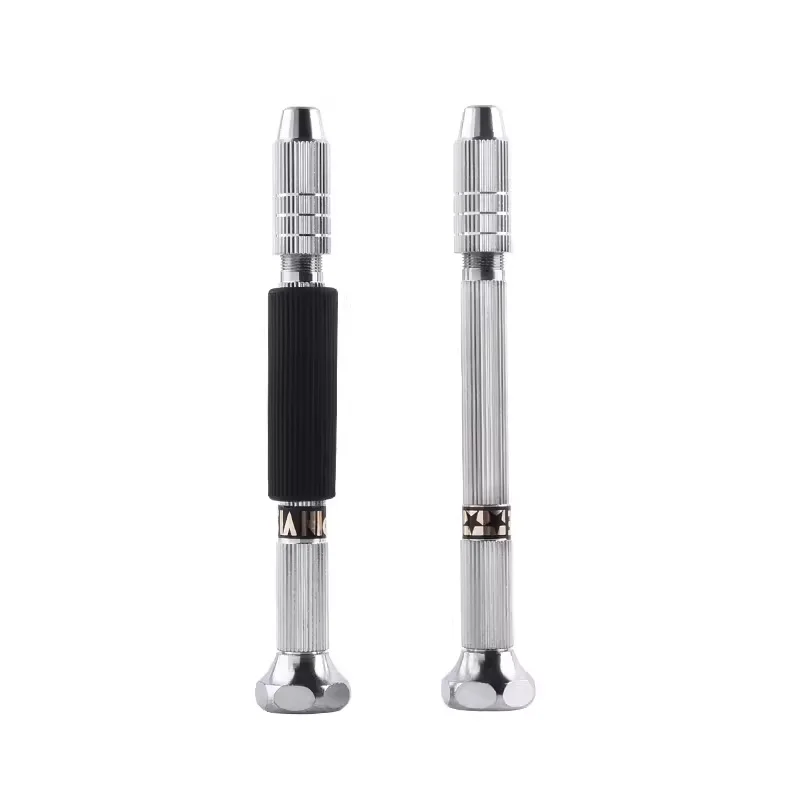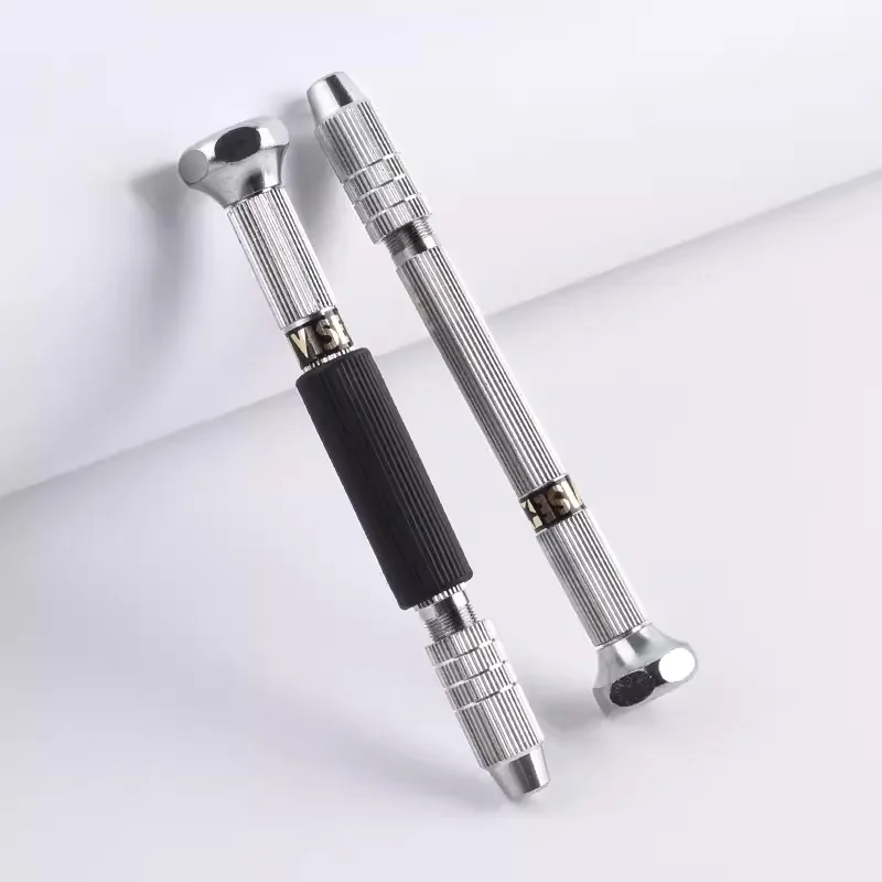 - This set includes two cylindrical pin vises featuring textured, grooved handles for superior grip during fine drilling tasks. The polished silver tips ensure durability and precise control in delicate work.