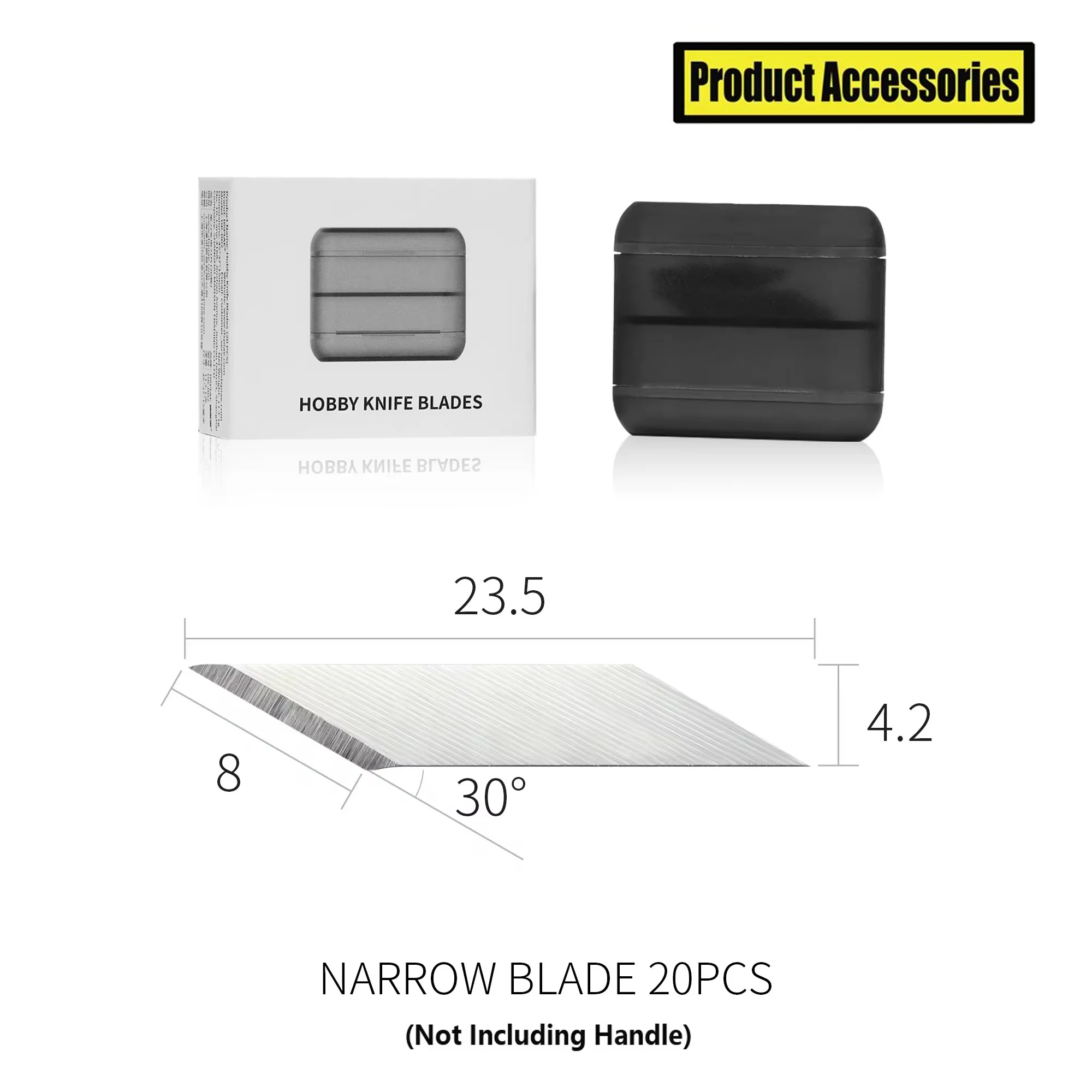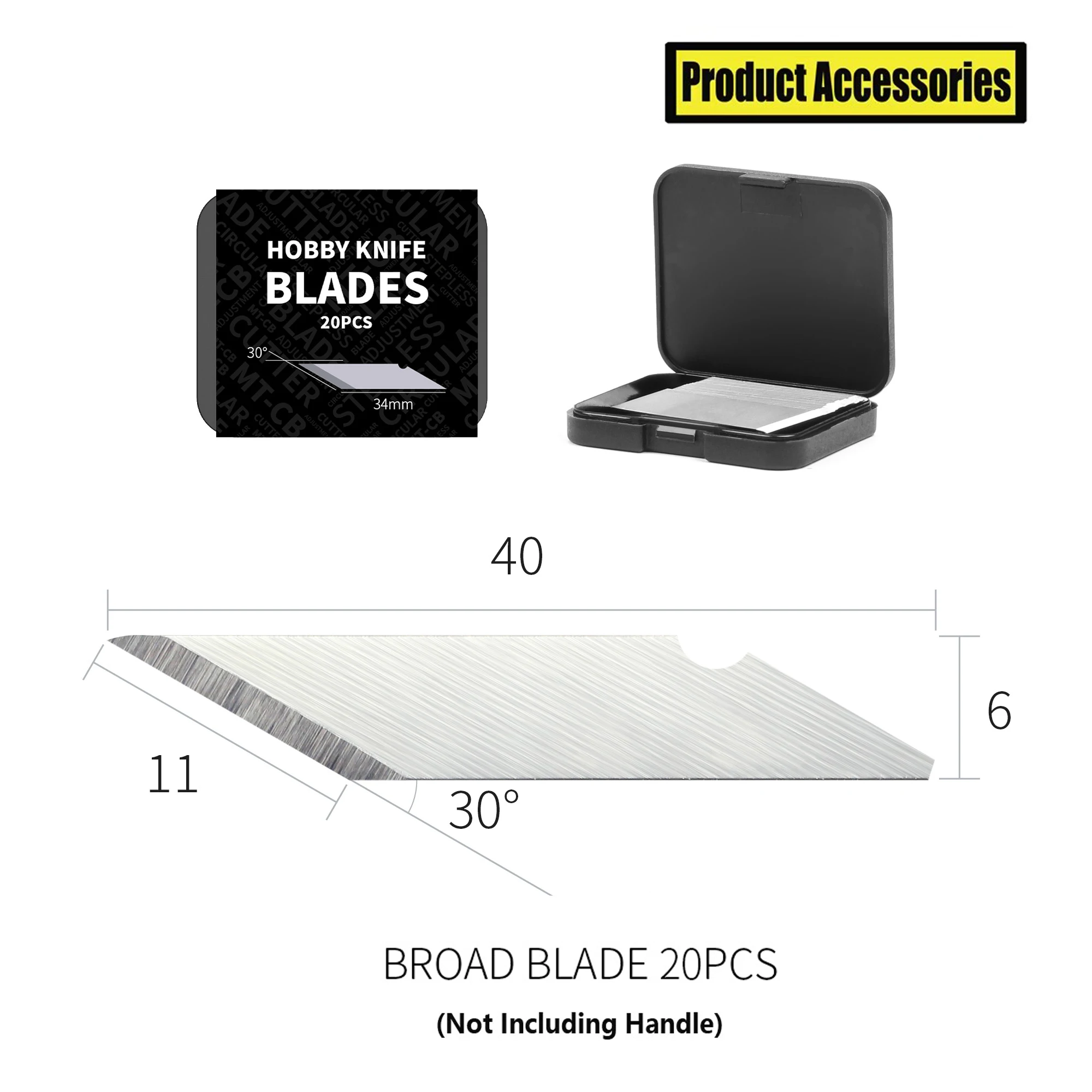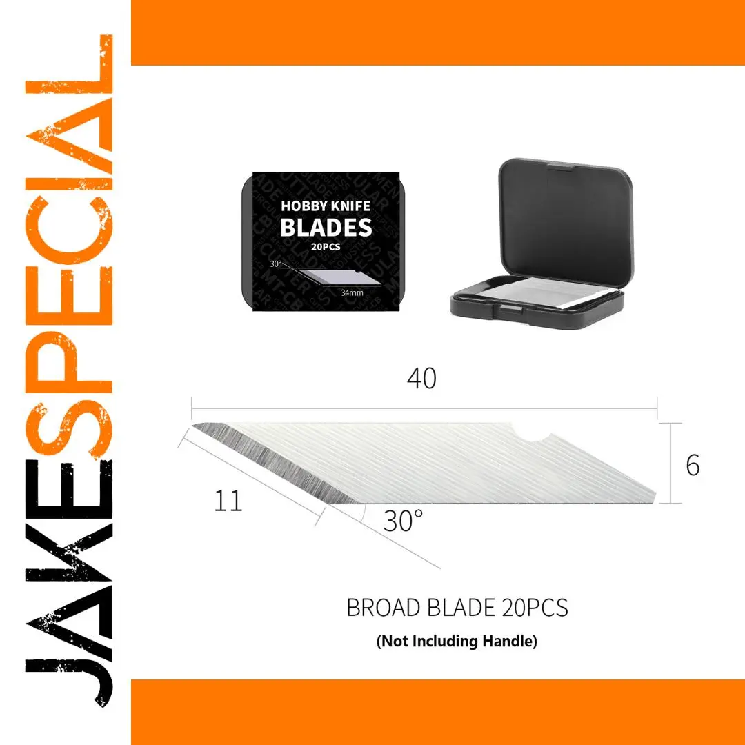 The Precision Hobby Blade Set for Gundam Models is essential for detailed modeling tasks, featuring high-precision blades in two variants, DK-B01 and DK-B02. Each blade measures 40mm in length, 11mm at the widest point, and 6mm thick, designed with a straight, beveled cutting edge at a 30-degree angle for clean, controlled cuts. Constructed from durable materials, these blades ensure long-lasting sharpness and compatibility with standard hobby handles. The set includes a secure black plastic case for organized storage and easy access, making it perfect for hobbyists seeking precision and efficiency in their projects.