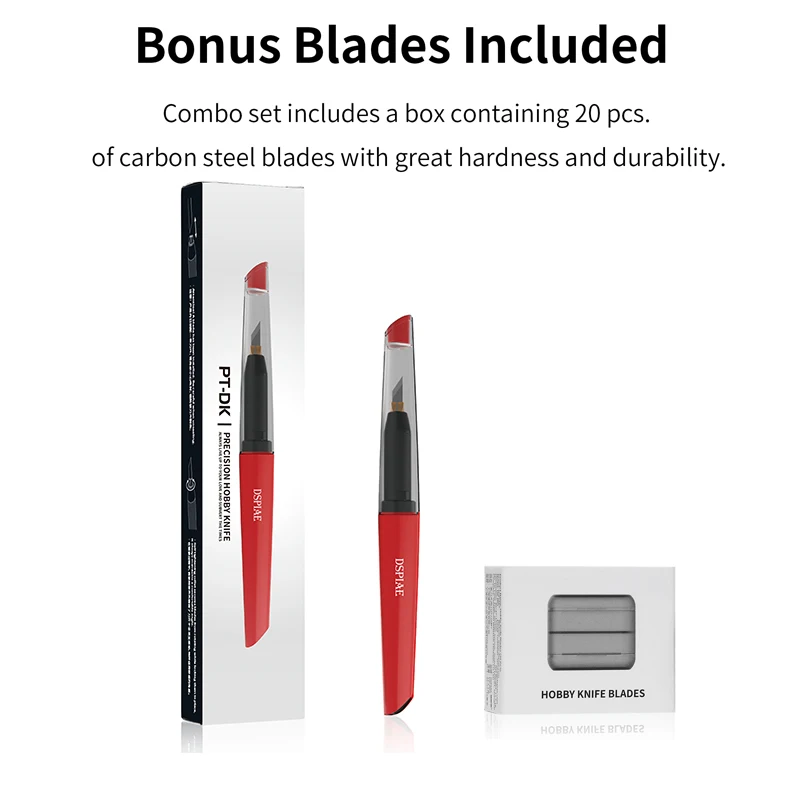 The Precision Hobby PT-DK tool for model crafting features a vibrant red ergonomic handle made from smooth, durable material, ensuring comfortable extended use. It includes a sharp fine metal blade for precise, delicate cuts, perfect for model making, arts, and crafts. The black twist-lock mechanism securely holds the blade in place, preventing accidents during use. This tool comes with 20 high-strength carbon steel blades, delivering long-lasting cutting performance. Designed for minor cuts in modeling and crafts, it guarantees durability and precision, making it an indispensable tool for serious hobbyists. Elevate your crafting experience with this reliable, stylish tool.