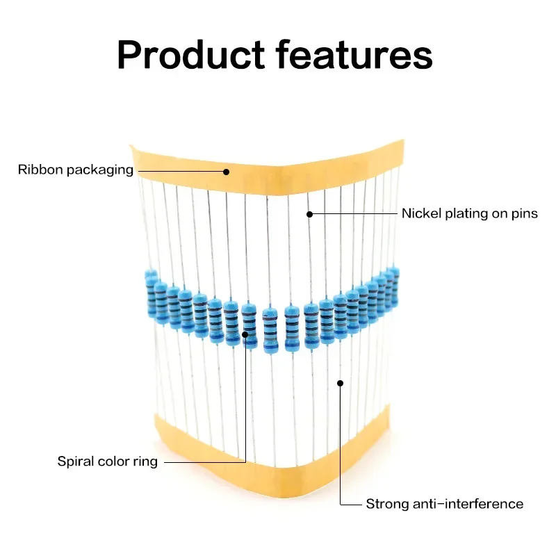- Each resistor boasts a durable metal film construction capable of operating at temperatures up to 100°C, ideal for long-term use in demanding environments.