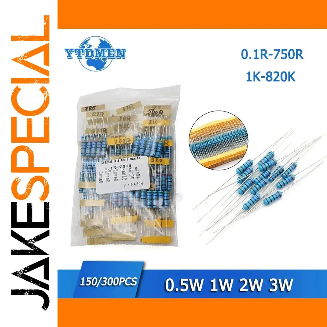 Enhance your electronic projects with this comprehensive set of metal film resistors from YTDMEN. Designed for accuracy and durability, these resistors feature a sleek, cylindrical form with a vibrant blue body and color-coded bands in white, yellow, and red, making identification straightforward. Available in multiple power ratings—0.5W, 1W, 2W, and 3W—and resistance values ranging from as low as 0.1 ohms up to 750 ohms and from 1K to 820K ohms, this collection is versatile enough for various applications. The resistors have a precise 1% tolerance, operate efficiently at temperatures up to 100°C, and are suitable for through-hole mounting. Organized neatly in groups, they make component management easy and ensure high-quality, reliable performance in your electronic endeavors.