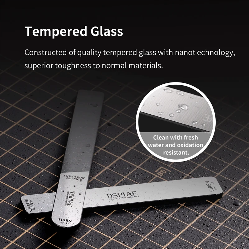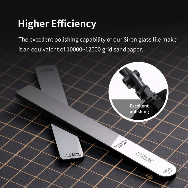 Experience exceptional precision with this set of ultra-precise, washable mirror glass files, featuring models MSF-13, SF-15, SF-16, and SF-17. Crafted from durable tempered glass, these mini files boast fine teeth and a double-cut design with a grit range of #10,000 to #12,000, making them ideal for detailed polishing and decorating tasks. The sleek, modern aesthetic and high-quality craftsmanship ensure durability and smooth operation, providing you with professional-level results. Perfect for model enthusiasts and artisans, these versatile tools will elevate your craftsmanship and help you achieve flawless, refined finishes on intricate projects.