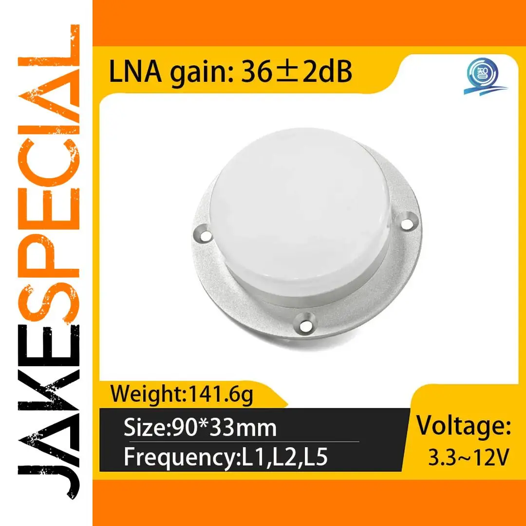 Experience unmatched accuracy with this high-grade GPS surveying antenna, designed for professional RTK use in UAVs and agricultural machinery. Its sleek, compact, cylindrical shape and minimalist white top surface lend it a modern aesthetic, perfect for high-performance outdoor environments. The robust metallic base with a matte finish ensures durability and waterproofing, making it suitable for varying weather conditions. Weighing just 141.6 grams and measuring 90×33mm, it offers a seamless balance of size and precision. Equipped with a multi-frequency receiver supporting L1, L2, and L5 bands and a 50Ω impedance, it guarantees reliable signals. The antenna connects via a durable SMA-K connector, with an LNA gain of 36±2dB, providing exceptional signal amplification for precise positioning tasks.
